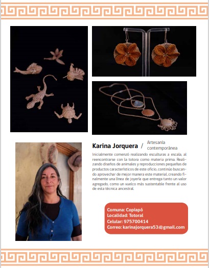 Entre las primicias que se pueden encontrar en el catálogo, están la elaboración de joyas que incorporan la totora como elemento identitario y el cobre repujado, la bioconstrucción con el aporte de fibras vegetales y diseño ligado a la permacultura, la marroquinería con pieles de pescado, la orfebrería con técnicas de los pueblos originarios, la elaboración de piezas ornamentales en huesos, maderas talladas y arcillas, la elaboración de ponchos, frazadas y otras piezas de textilería con procesos ciento por ciento naturales en la obtención, teñido, e hilado de la lana, tal como lo hacían los ancestros Colla y Diaguita.