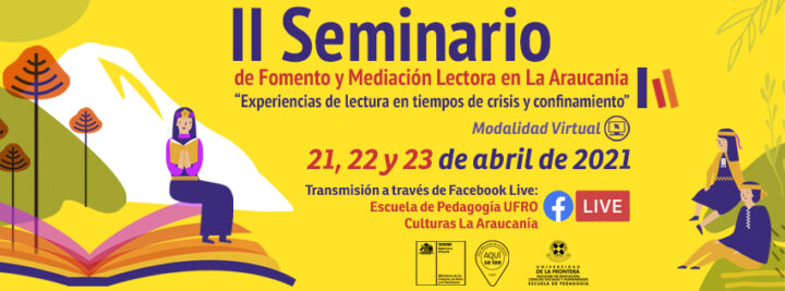 A través de una ceremonia virtual la que contó con la presencia del seremi de las Culturas, las Artes y el Patrimonio Región de La Araucanía, Enzo Cortesi Bernales y el decano de la Facultad de Educación, Cs. Sociales y Humanidades de la Universidad Frontera, Juan Manuel Fierro Bustos, se dio el vamos a la convocatoria del II Seminario de Mediación Lectora en La Araucanía “Experiencias de Lectura en tiempos de crisis y confinamiento”, el cual se desarrollará entre los días miércoles 21 y viernes 23 de abril del presente año. En esta oportunidad, se realizará en modalidad virtual y será transmitido en vivo por las plataformas de redes sociales de ambas instituciones: https://www.facebook.com/culturas.araucania y https://www.facebook.com/EscuelaPedagogiaUfro.
