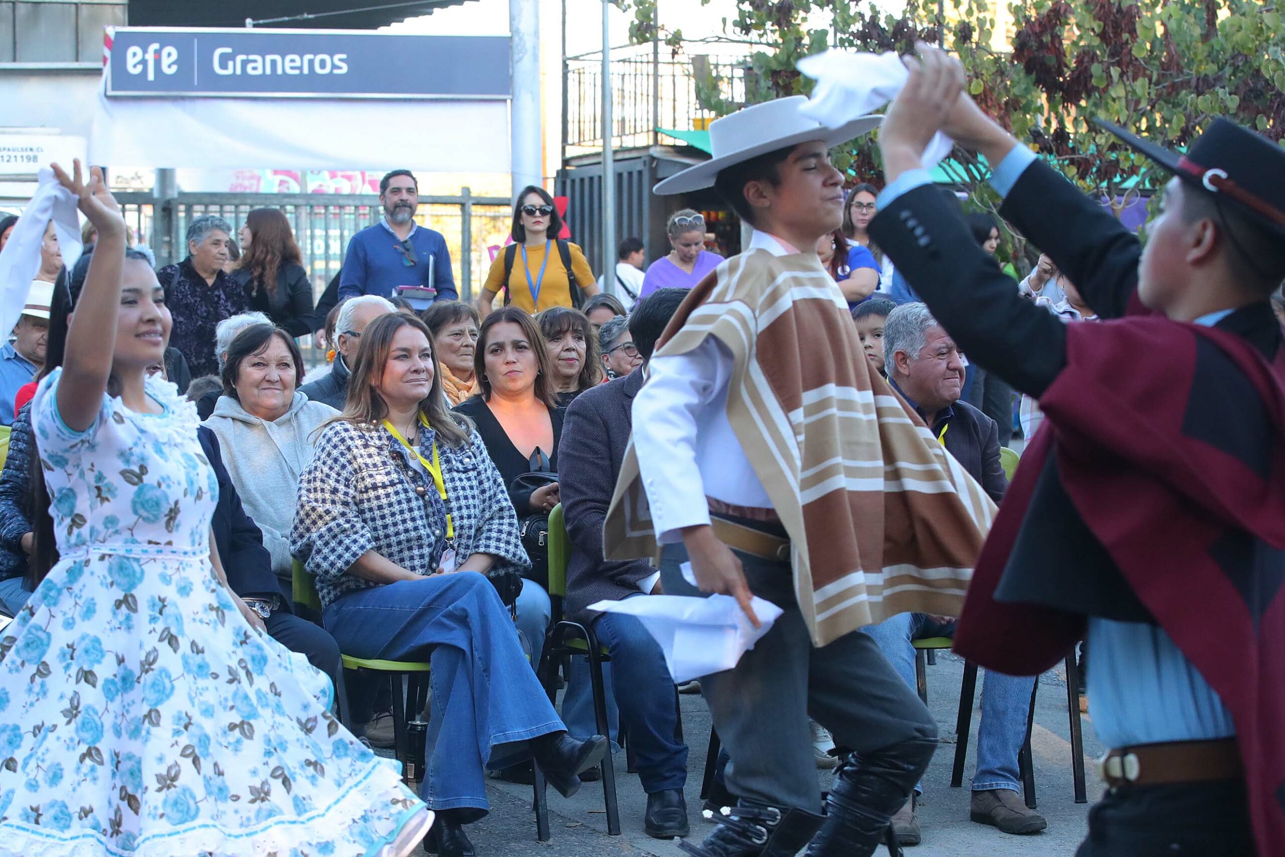Trenes Culturales, del ministerio de las Culturas, las Artes y el Patrimonio, celebró este fin de semana una nueva parada, esta vez en Graneros, en la Región de O’Higgins. El escenario, instalado en el Parque Alberto Hurtado, albergó a alrededor de 10 mil personas que llegaron, este sábado y domingo, a disfrutar de los shows gratuitos de Inti Illimani Histórico, Sinergia Kids, Zúmbale Primo y Juanito Ayala.