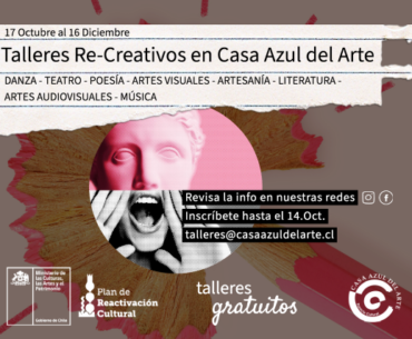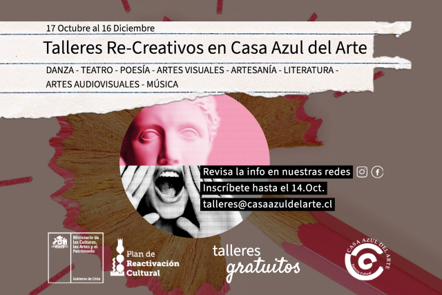 Las clases comenzará el próximo 17 de octubre y se extenderán hasta mediados de diciembre próximo. El proceso de inscripción permanecerá abierto hasta el 14 de octubre. Quienes deseen participar deberán registrarse en el correo talleres@casaazuldelarte.cl El acceso es gratuito. Para más información revisar o contactar a través de redes sociales Casa Azul del Arte y su web: www.casaazuldelarte.cl