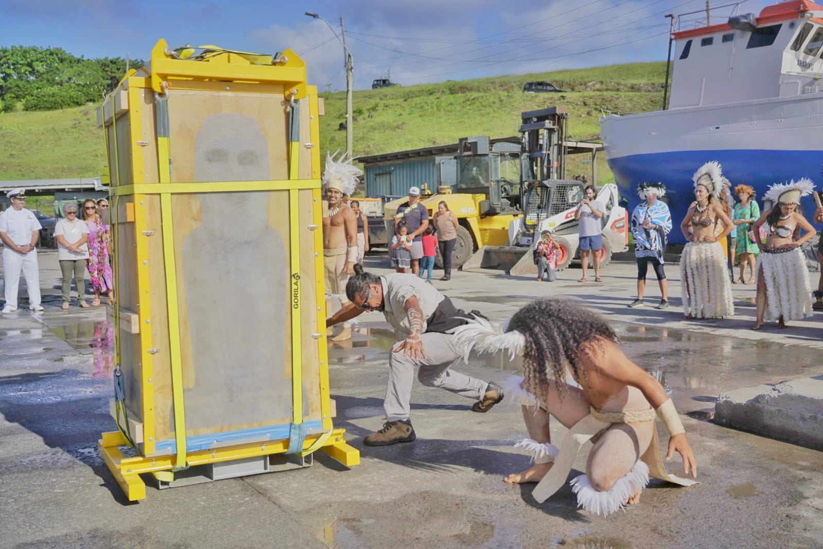 Después de 152 años, este 7 de marzo el Moai Tau arribó a Rapa Nui, luego de un complejo proceso técnico y diagnóstico para garantizar la integridad de esta escultura de roca basáltica, que constituye para este pueblo originario una encarnación ancestral.