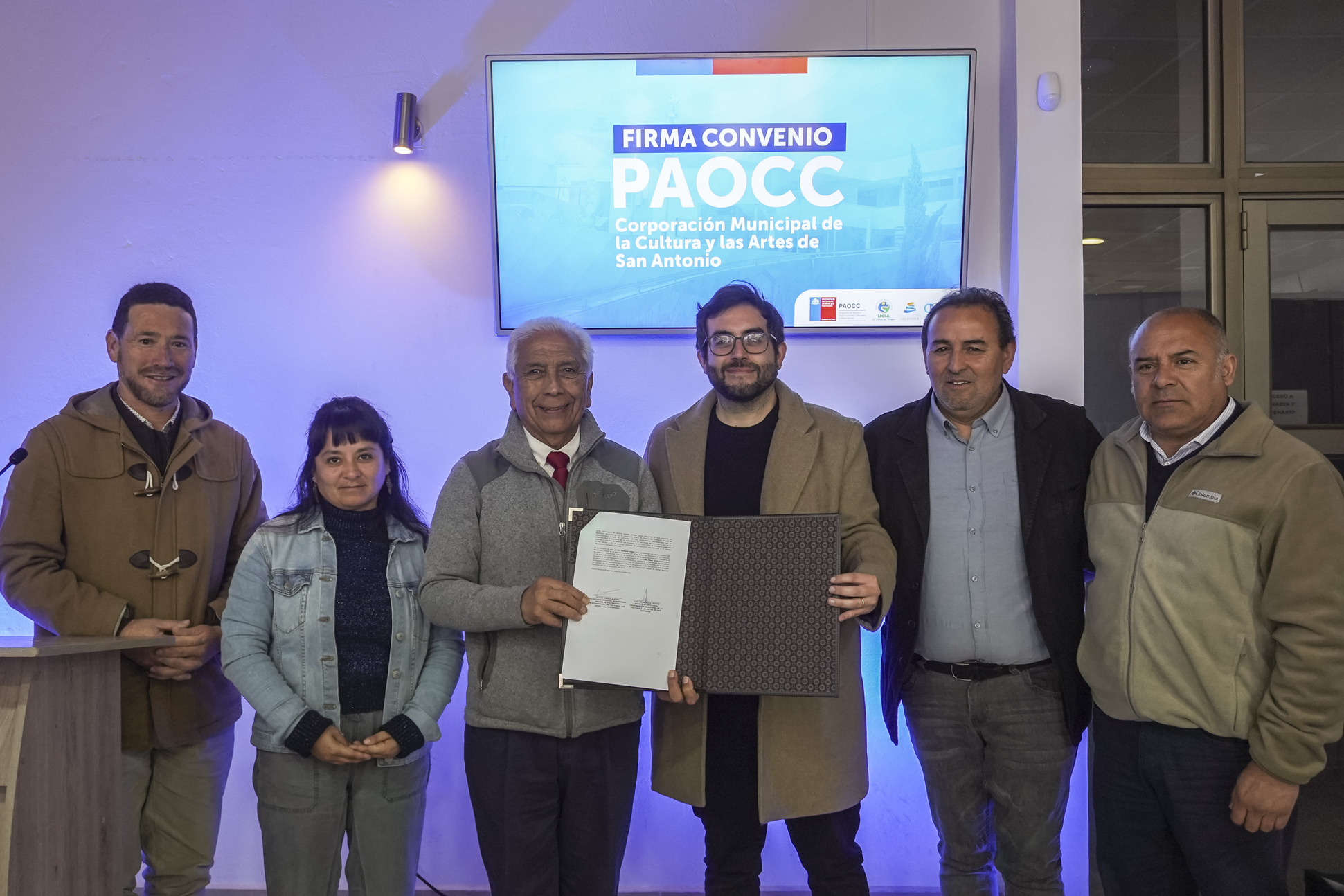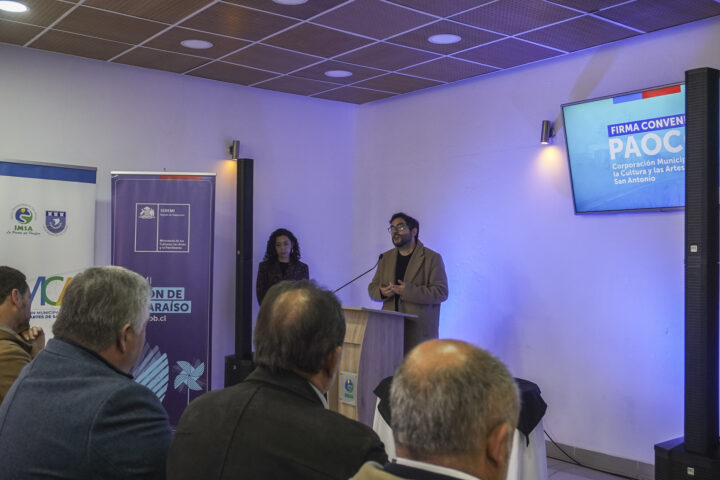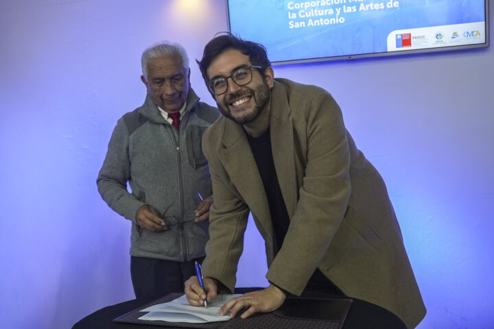 Con presencia del seremi de las Culturas, las Artes y el Patrimonio de la Región de Valparaíso, Javier Esnaola, y el alcalde de San Antonio y presidente de la Corporación Municipal de la Cultura y las Artes de San Antonio, Omar Vera, se realizó la firma de convenio para la entrega de los recursos del Programa de Organizaciones Culturales Colaboradoras, PAOCC 2025.