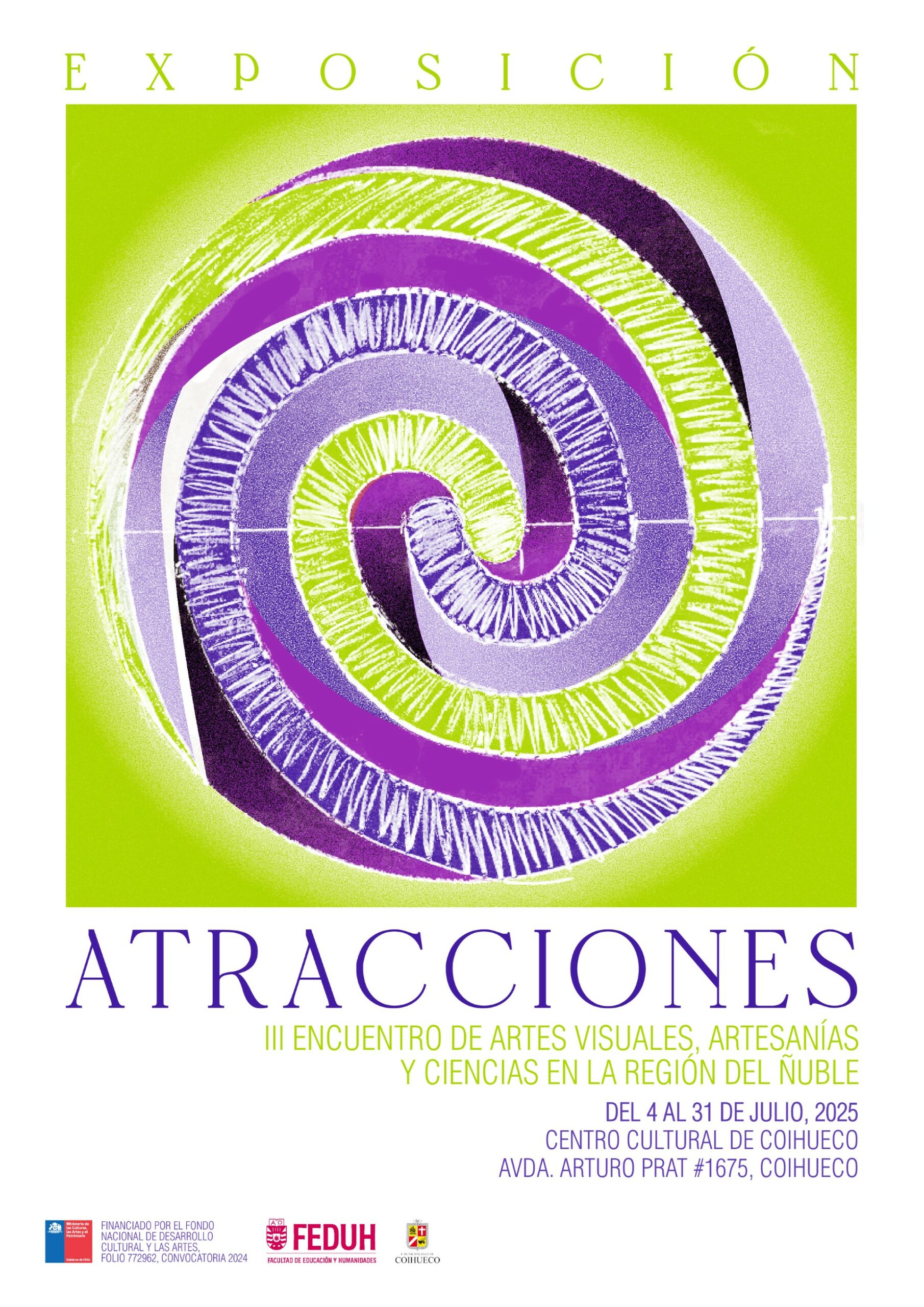 La iniciativa cuenta con el respaldo del Fondo Nacional de Desarrollo Cultural y las Artes, convocatoria 2024, y es organizada en colaboración con la Ilustre Municipalidad de Coihueco. “Este año buscamos descentralizar el arte, por lo que la exposición se exhibirá en las provincias de Punilla (Coihueco), Itata (Quirihue) y Diguillín (Chillán Viejo y Chillán). Asimismo, seguimos con la organización del Coloquio Atracciones III, a realizarse en el mes de octubre”, señaló Tania Faúndez, directora del proyecto.