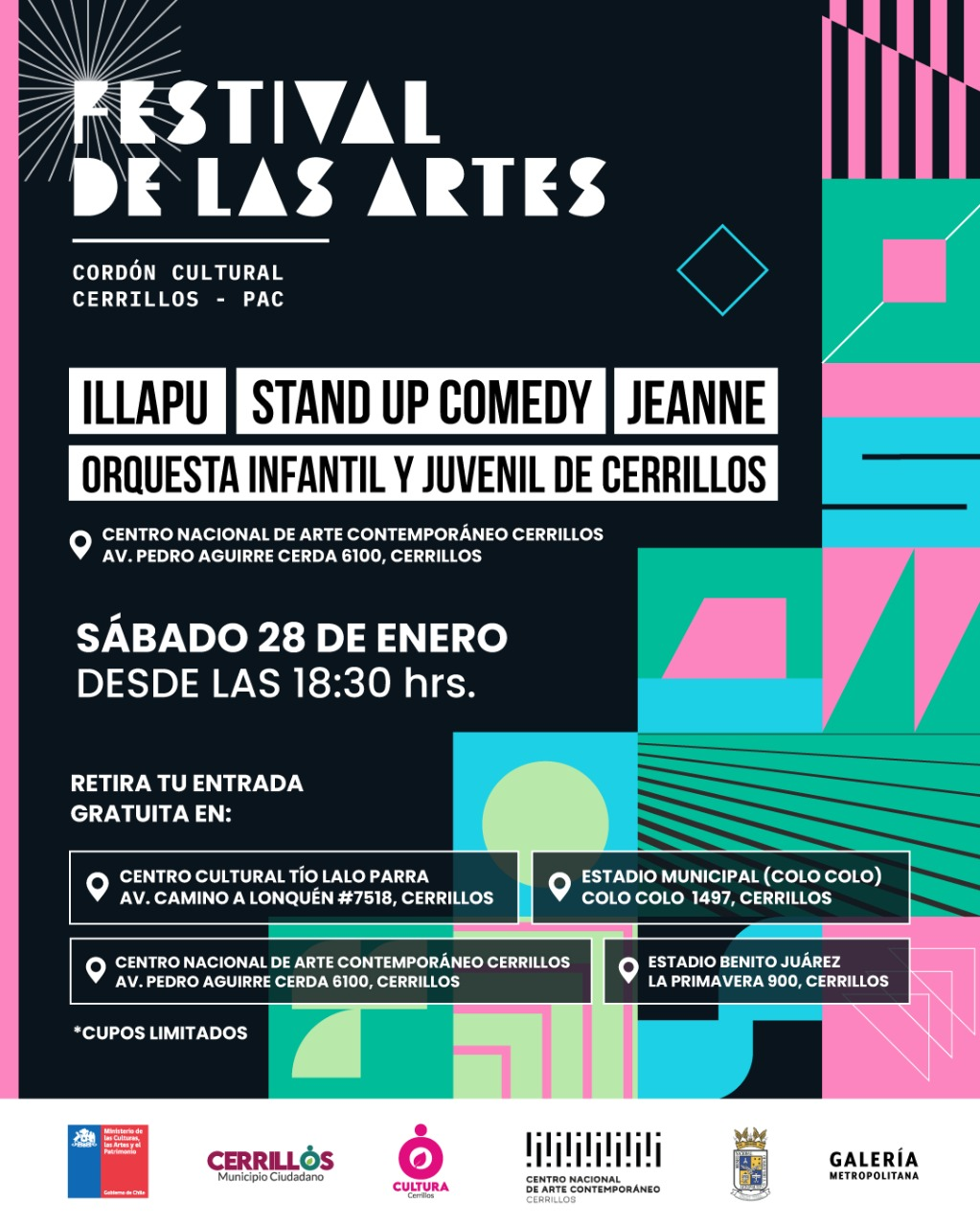 El sábado 28 de enero en la explanada del Centro Nacional de Arte Contemporáneo (CNAC), se realizará la jornada inaugural del nuevo cordón cultural en la zona sur de Santiago, circuito que impulsa el Ministerio de las Culturas, las Artes y el Patrimonio, en asociación con el Centro Cultural Municipal Tío Lalo Parra (CCMTLP).