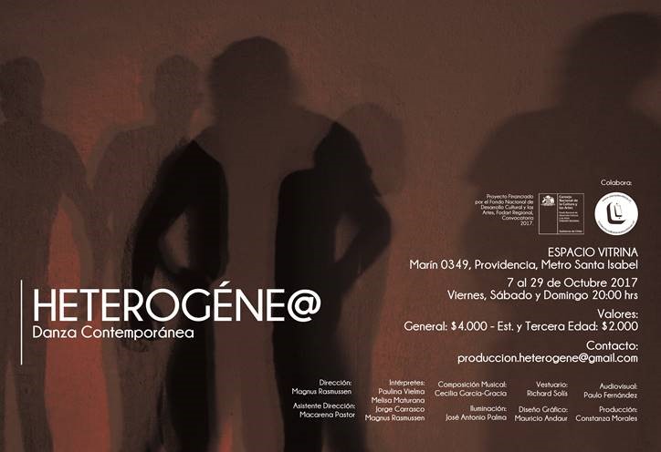 Heterogéne@ corresponde a la última obra de una trilogía compuesta por otros dos trabajos anteriores: Homogénica y Hegemónico, en las cuales se aborda el universo femenino y masculino respectivamente, a partir de las experiencias biográficas de cada intérprete, y la exploración de la masculinidad propia del coreógrafo en la segunda. No obstante, en Heterogéne@ surge la necesidad de cerrar esta trilogía investigada con hombres y mujeres, abordando estos mundos puestos en relación.