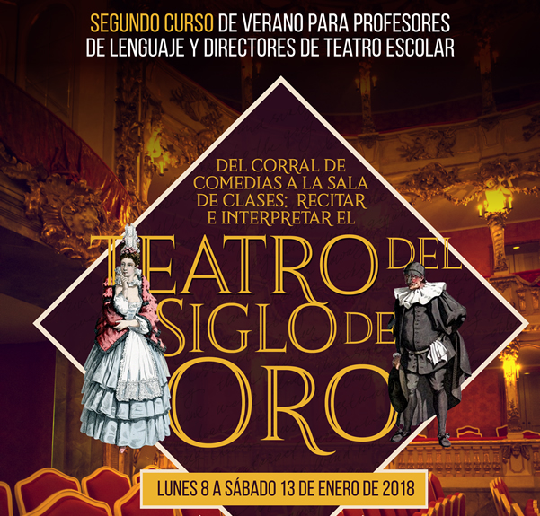 El área de Literatura Española del Departamento de Literatura de la Universidad de Chile, el Instituto de Literatura de la Universidad de los Andes, el Centro Cultural de España y el Taller de Verso Clásico, con la colaboración del Consejo Nacional de la Cultura y las Artes de la Región Metropolitana, a través del Plan Nacional de Lectura, invitan a participar del segundo curso de verano para profesores de Lenguaje y directores de teatro escolar “Del corral de comedias a la sala de clases: recitar e interpretar el teatro del Siglo de Oro”.