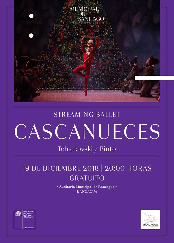 El Municipal de Santiago transmitirá este 19 de diciembre, a las 20:00 horas, el ballet Cascanueces, en convenio con el Ministerio de las Culturas, de las Artes y el Patrimonio, a diez puntos a lo largo de Chile.