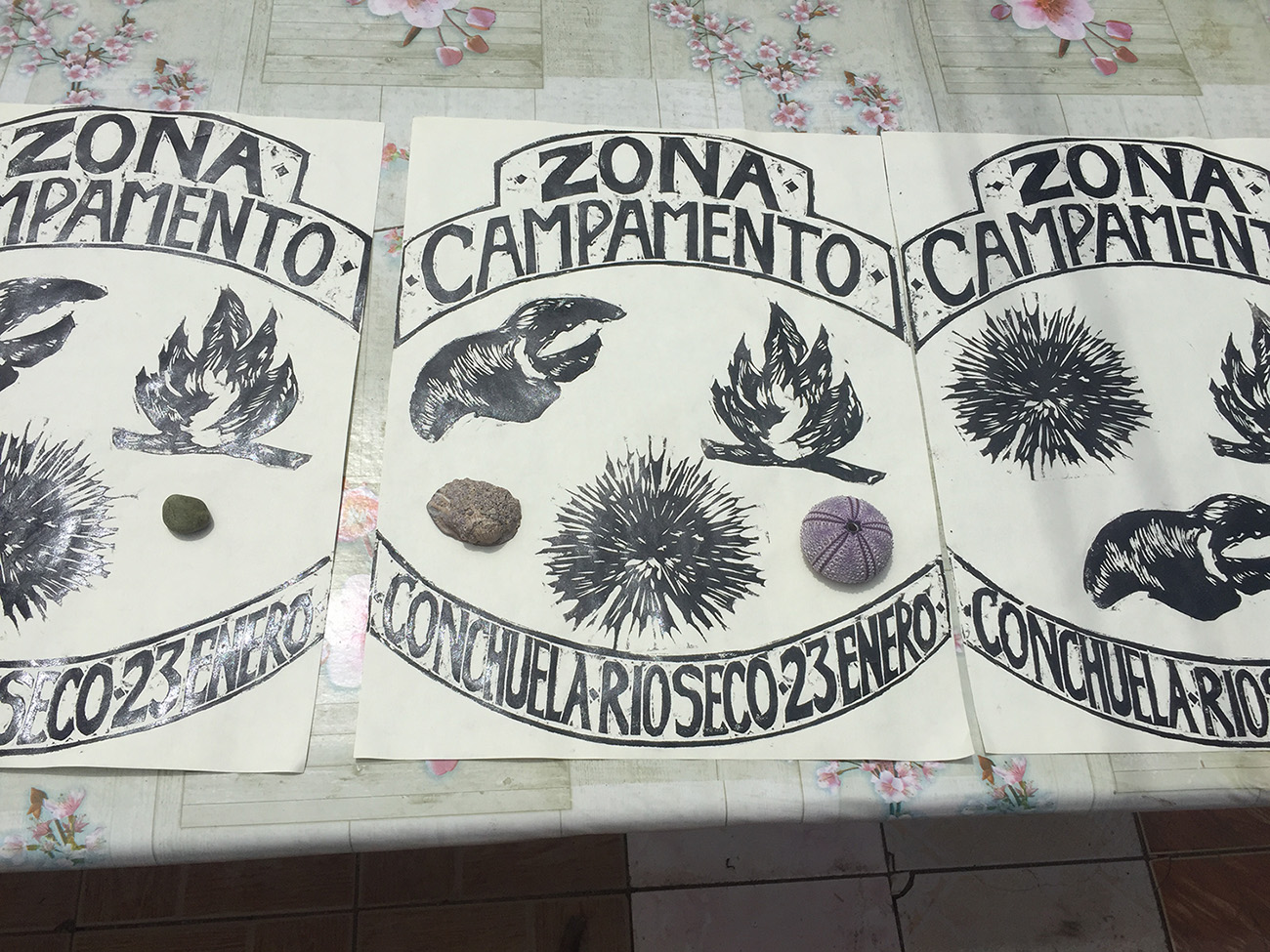 “Zona de Campamento” es una obra colectiva, donde cada uno de los y las artistas crea una bitácora propia, la cual es también una obra individual basada en una reflexión crítica en torno al territorio de Río Seco.
