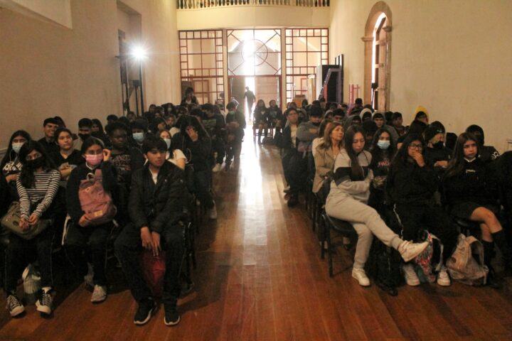 Cerca de sesenta jóvenes asistieron al Centro Cultural Santa Inés para conocer la realidad de los bailes religiosos de los valles de Monte Patria, a través del registro de la serie “´Promeseros”, dirigida por el realizador Víctor Soto.