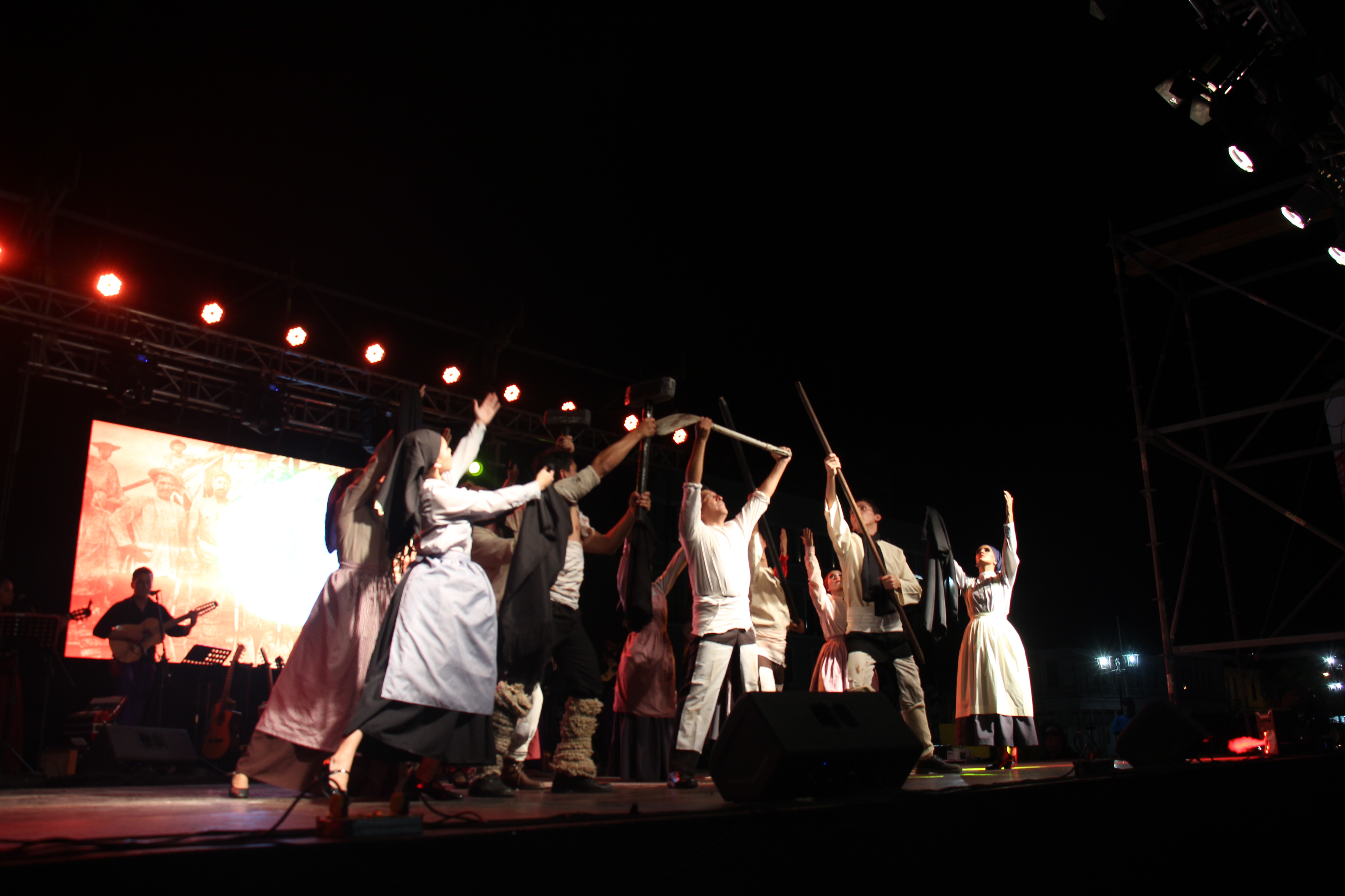 La Plaza Prat de Iquique fue el escenario donde la Compañía de Danzas Tradicionales Kirqui Wayra presentó “Entre Violeta y Parras”, que en diversos cuadros recrea el trabajo folclórico que Violeta Parra recopiló en todo el país, además de pasajes de su vida. La puesta en escena contó con más de 30 bailarines, 8 músicos y el financiamiento del CNCA a través del Programa Chile Celebra y Violeta 100 en el año del centenario del nacimiento de Violeta Parra.