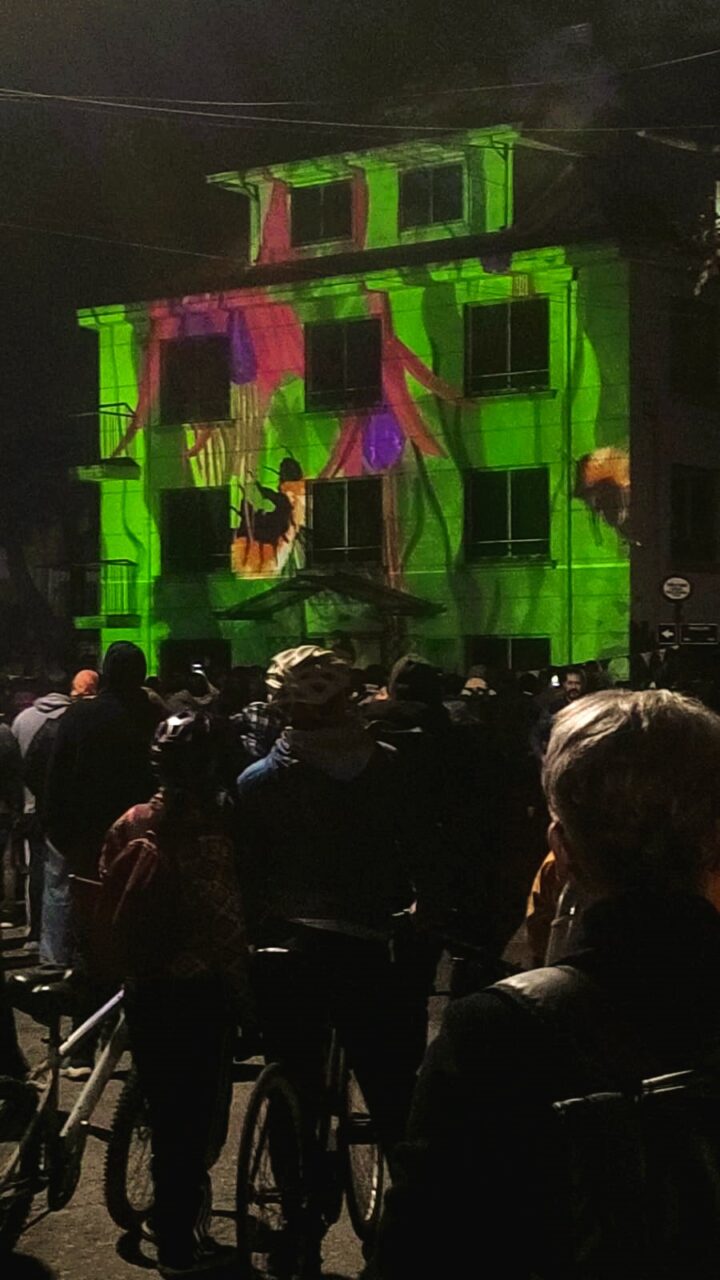La intervención lumínica, a cargo de la Corporación Cultural Actos Sinésticos, proyectada en la fachada de la Seremi de las Culturas, las Artes y el Patrimonio, se extendió por cerca de una hora y media, con una selección de obras visuales creadas por niñas y niños de la región, inspiradas en la naturaleza y en los «recados» de Gabriela Mistral, figura homenajeada este año a 80 años de haber recibido el Premio Nobel de Literatura.