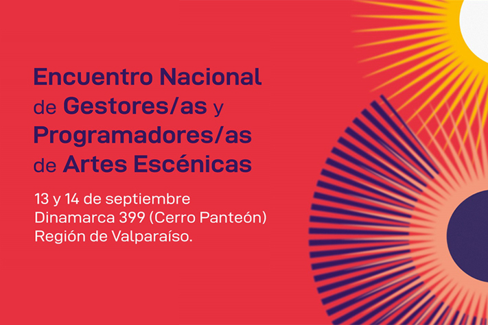 Con el fin de fomentar el desarrollo de agentes que intermedien las artes escénicas, el Ministerio de las Culturas, las Artes y el Patrimonio, a través de la Secretaría Ejecutiva de Economía Creativa y la Macro Área de Artes Escénicas, en conjunto con el Centro Cultural de España (CCE Santiago), convocan a participar en el Encuentro Nacional de gestores/as y programadores/as de Artes Escénicas, a realizarse el próximo 13 y 14 de septiembre en Dinamarca 399, cerro Panteón, Valparaíso.