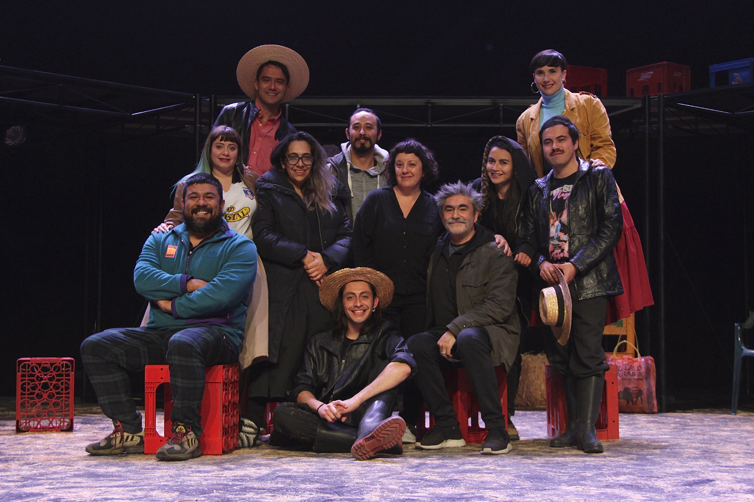 Esta vez, el inconfundible lenguaje de la compañía Teatro La María llena la escena de personajes con pelucas barrocas y maquillajes grotescos que se apropian de una sala de teatro, se desparraman a través de sus butacas y piden comida por delivery; un mundo no-realista y que deja a la vista sus artificios para retratar una historia que hoy, en medio del actual contexto chileno, se escucha, siente y percibe más real que nunca.