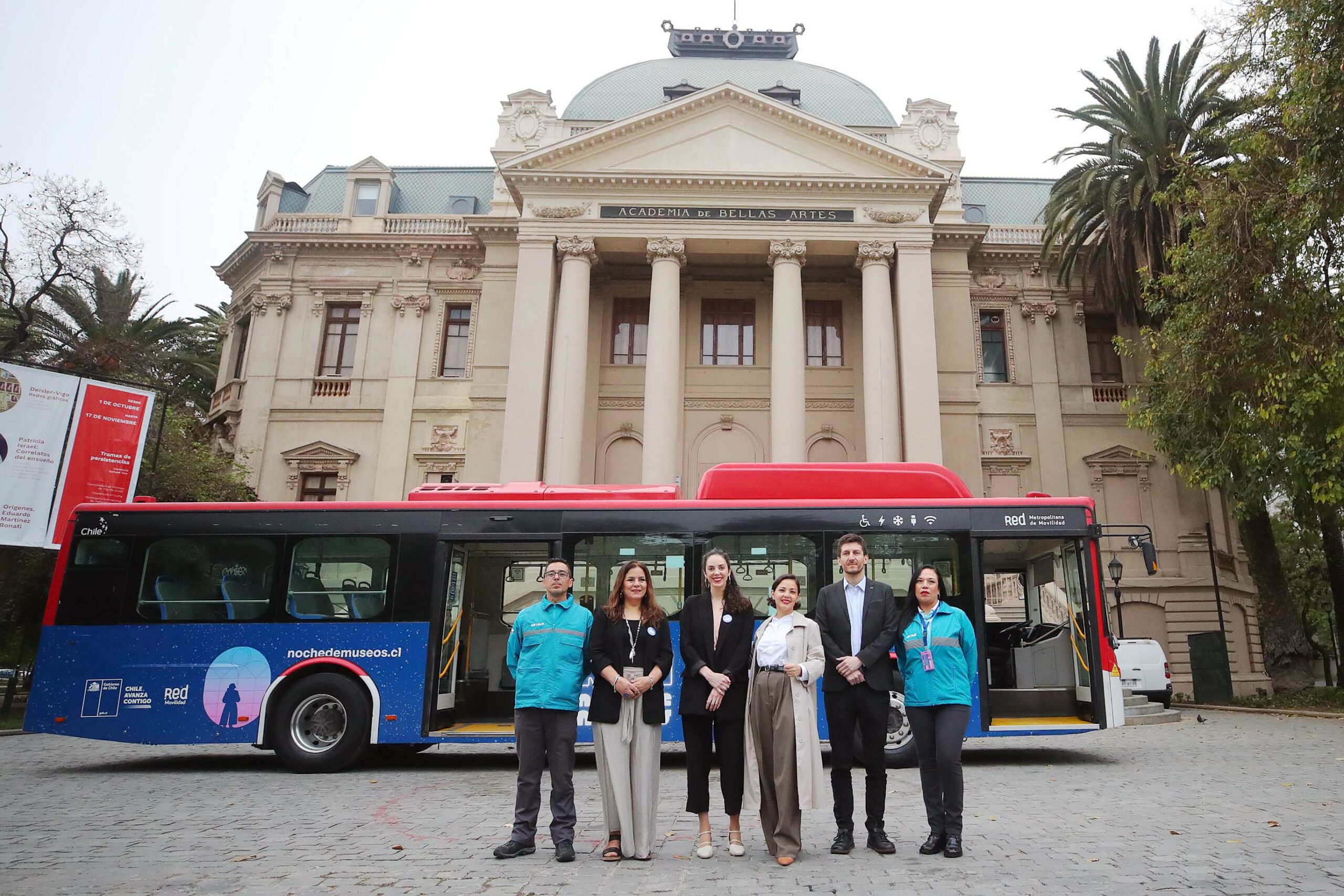 Para conectar los principales espacios culturales del centro de Santiago, el sistema Red Movilidad, del Ministerio de Transportes y Telecomunicaciones, implementará el recorrido especial 508X, con tres buses eléctricos brandeados con las gráficas de Noche de Museos.