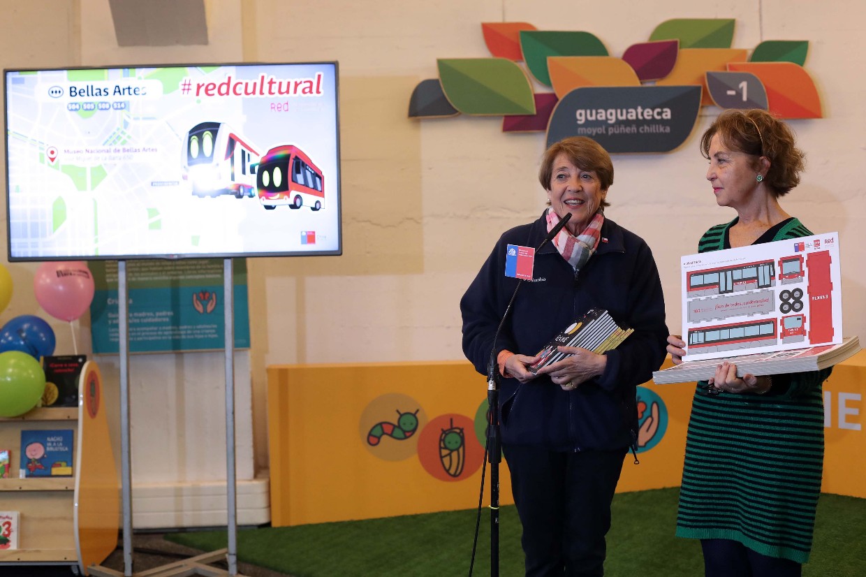 La ministra de las Culturas, las Artes y el Patrimonio, Consuelo Valdés, y la ministra de Transportes y Telecomunicaciones, Gloria Hutt, presentaron una detallada guía con actividades familiares para realizar en vacaciones de invierno y las formas cómo llegar a ellas a través del transporte público.