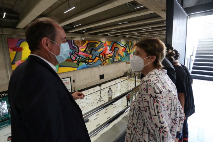 Ministra de las Culturas participa en inauguración de mural de Ciro Beltrán, para el programa MetroArte