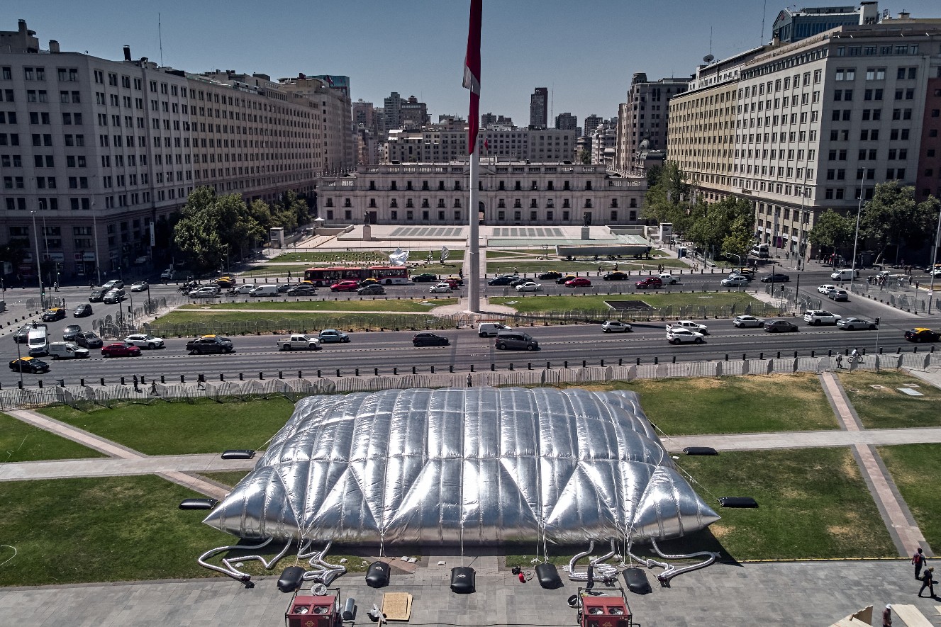En el costado sur del Palacio de La Moneda, los espacios públicos de la Plaza Bulnes exhiben una llamativa estructura inflable de color plateado de 35 metros, realizada por los arquitectos Smiljan Radic y Nicolás Schmidt. En este auditorio temporal se llevará a cabo el programa de encuentros, debates y conferencias que contará con la participación de destacados exponentes de la arquitectura y urbanismo; como Iñaqui Carnicero, Ana Falú, Cecilia Puga, Frédéric Bonnet, Atxu Amann, Alejandro Aravena, Marina Otero y Smiljan Radic. Además, al cierre de cada jornada se podrá ver una selección de trabajos audiovisuales sobre arquitectura, ciudad y vida urbana a cargo de Arqfilmfest.