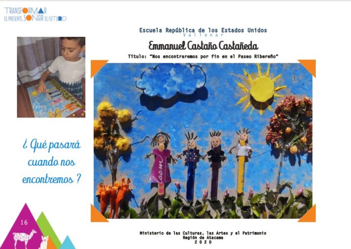 En Atacama, indicó, “hemos generado cápsulas audiovisuales para compartir a través de nuestras redes, y un libro que agrupa más de 80 trabajos artísticos que la gente podrá apreciar de manera digital en nuestra página ministerial www.cultura.gob.cl a partir de este fin de semana y que permitirá preservar estos trabajos lindos y llenos de experiencias que dan cuenta de lo que están viviendo nuestros niños, niñas y jóvenes en este contexto de pandemia, además de dar testimonio de sus sueños y esperanzas futuras”.