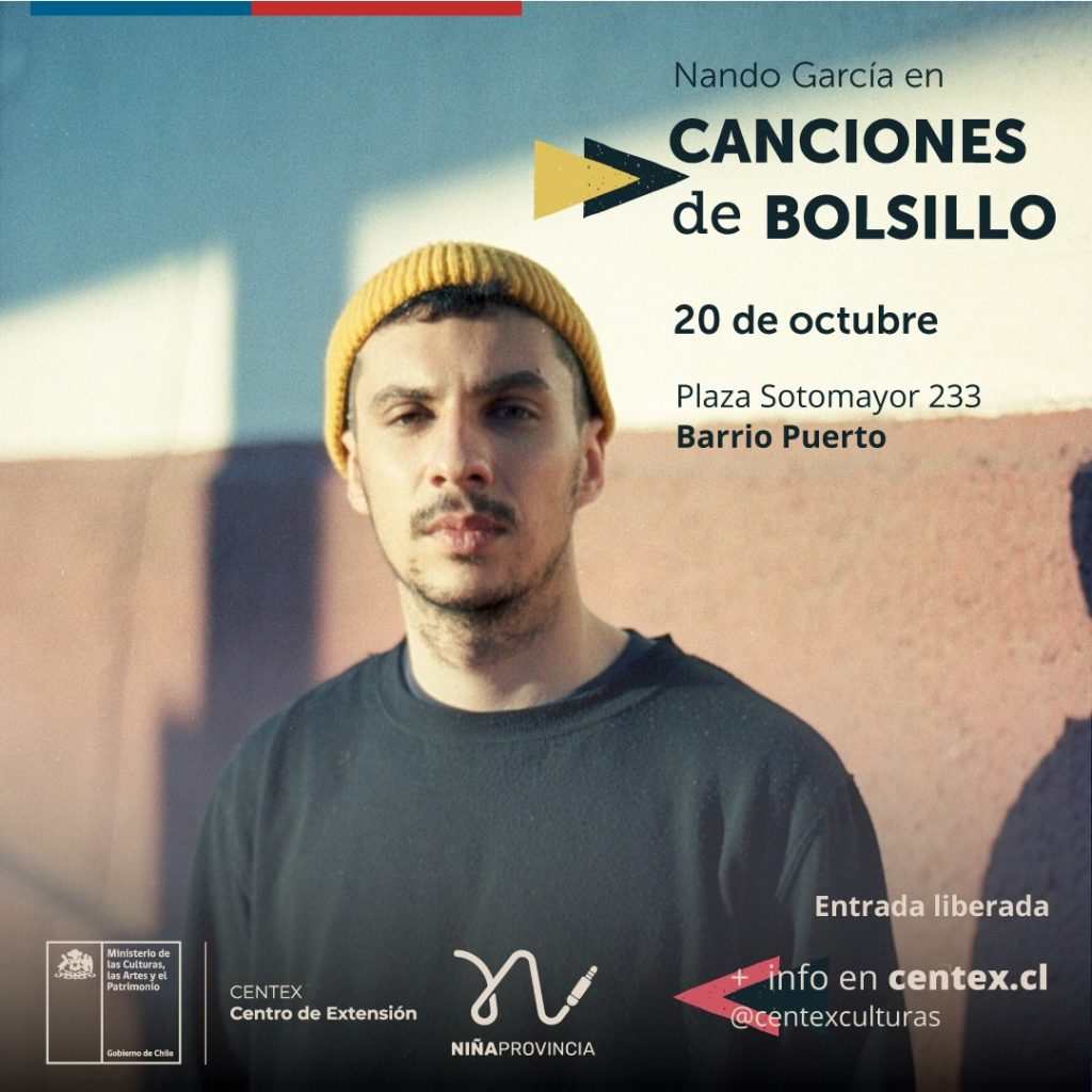 Dos agrupaciones y dos solistas serán los encargados de animar las dos jornadas de Canciones de Bolsillo, ciclo de conciertos de pequeño formato que son organizados por el Centro de Extensión del Ministerio de las Culturas, las Artes y el Patrimonio, Centex (Sotomayor 233, Valparaíso), y que en esta ocasión cuentan con la curatoría del portal regional de crítica musical, Niña Provincia.