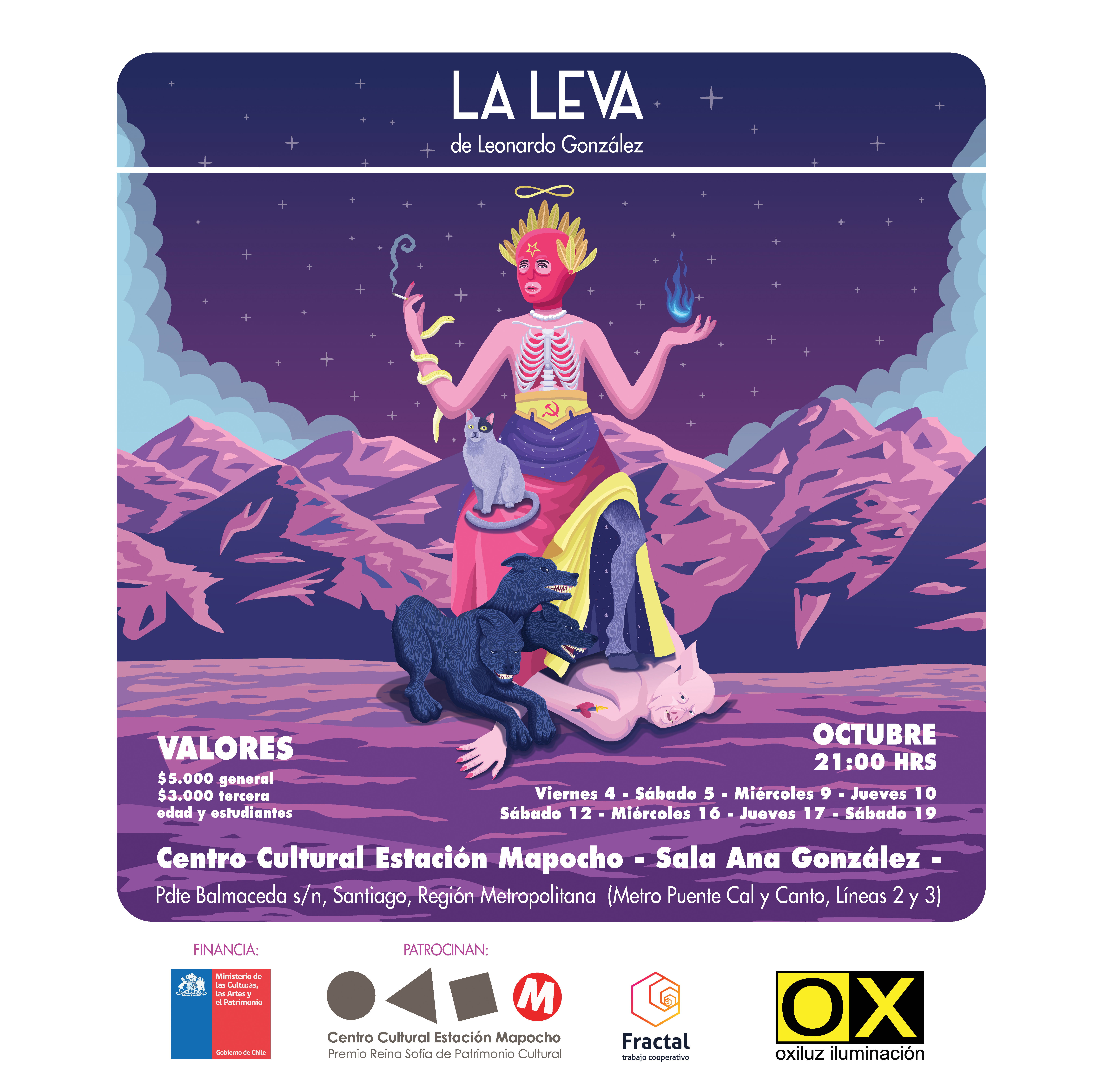 La Leva cuenta con el apoyo del Ministerio de las Culturas las Artes y el Patrimonio a través de Fondart 2019, junto al patrocinio de la Corporación Cultural Estación Mapocho, Oxiluz Producciones y Cooperativa de Trabajo Fractal.