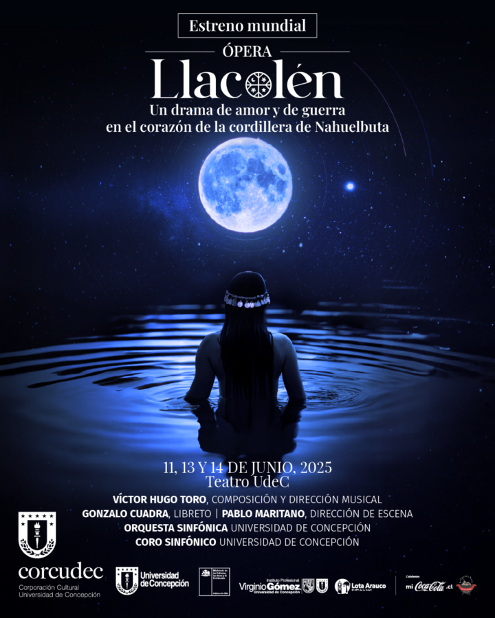 Una nueva ópera chilena, inspirada en una leyenda mapuche de la Región del Biobío, llegará por primera vez a escena este 11 de junio en el Teatro de la Universidad de Concepción. Se trata de Llacolén, obra compuesta y dirigida por Víctor Hugo Toro, con libreto de Gonzalo Cuadra y dirección escénica de Pablo Maritano. La producción, que cuenta con el respaldo del Fondo Nacional de Desarrollo de las Artes Escénicas 2024, será interpretada en español y mapudungún por un elenco de reconocidos artistas nacionales e internacionales, junto al Coro y Orquesta Sinfónica de la Universidad de Concepción.