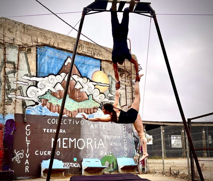 En el lugar, la compañía Enaires, uno de los Puntos de Cultura que cuenta con financiamiento para este 2025, realizó una muestra de acrobacia aérea ante los presentes. Esta organización realiza desde hace una década un importante trabajo de investigación, formación e intervención artística en espacios públicos, con un importante foco en niñas, niños y adolescentes.