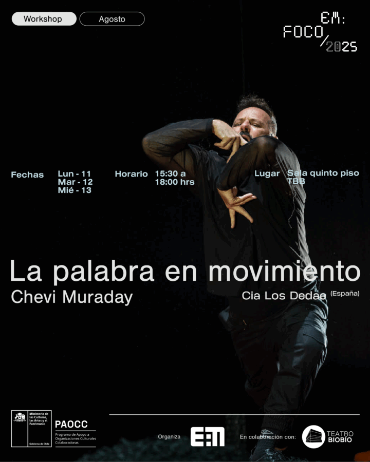 Señalar que el arribo del también bailarín de danza contemporánea a nuestra ciudad -fundador e integrante de la compañía española Losdedae- se da en el contexto del EMFOCO 2025, programa formativo que es realizado hace más de una década por el Centro Cultural Escénica en Movimiento (CCEM), el que a su vez es parte del Programa de Apoyo a Organizaciones Culturales Colaboradoras (PAOCC) del Ministerio de las Culturas, las Artes y el Patrimonio.