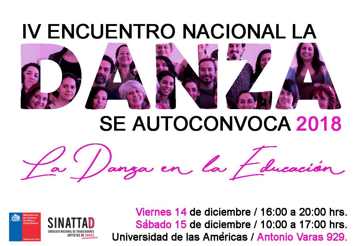 Para este 2018 el Sindicato Nacional de Trabajadores Artistas de Danza (SINATTAD) ha querido realizar un encuentro que profundice el trabajo en La Danza en la Educación. El objetivo principal es desarrollar una propuesta de política nacional de este arte en la educación escolar, levantada desde el propio gremio, que sirva como guía y sustento para futuras acciones de su implementación.