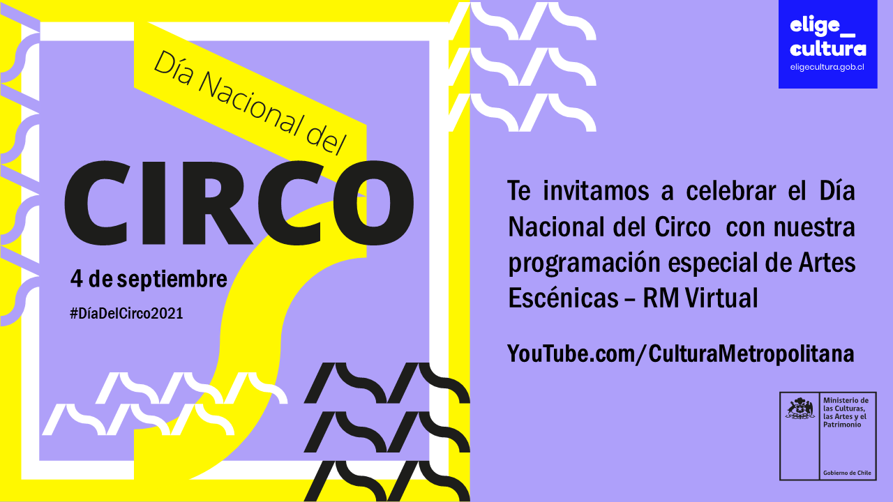 En el contexto de las celebraciones del Día Nacional del Circo, la Seremi de las Culturas, las Artes y el Patrimonio de la Región Metropolitana, lanzará la programación “Artes Escénicas – RM Virtual”. La Iniciativa, tiene como objeto contribuir al reconocimiento y valoración social tanto de las Artes Escénicas, como de sus exponentes regionales; poniendo a disposición de la ciudadanía una serie de presentaciones artísticas, de las disciplinas que la Ley de Fomento de las Artes Escénicas considera, potenciando la circulación y exhibición de obras de artistas de diversos lenguajes escénicos, creadas durante el periodo de emergencia sanitaria ya sea de manera individual o grupal, para contribuir a la contención y desarrollo de diversas propuestas creativas utilizando como soporte de creación y difusión la intermediación tecnológica.