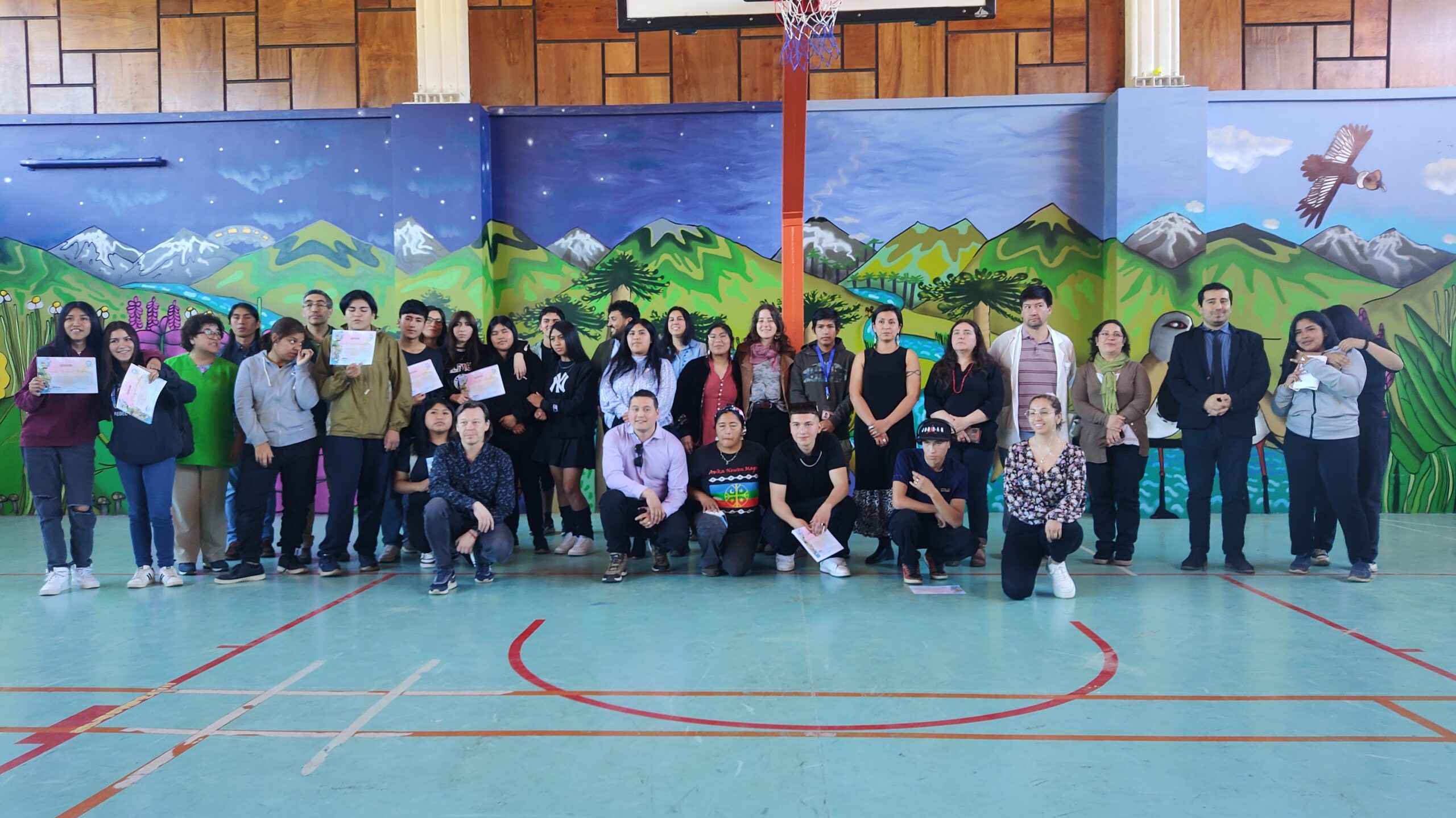 En el liceo de Lonquimay dieron vida a una hermosa obra artística que reúne el colorido, la historia, el paisaje y los elementos identitarios de la comuna, titulada «Estéticas Patrimoniales», mural de creación colectiva elaborado en conjunto por las y los estudiantes en un proceso que estuvo liderado por la destacada agrupación Unkolordistinto.