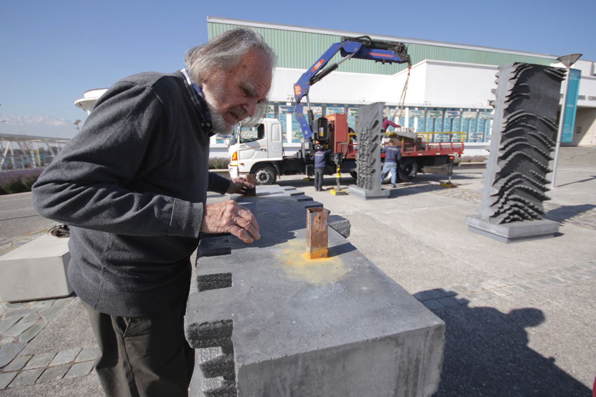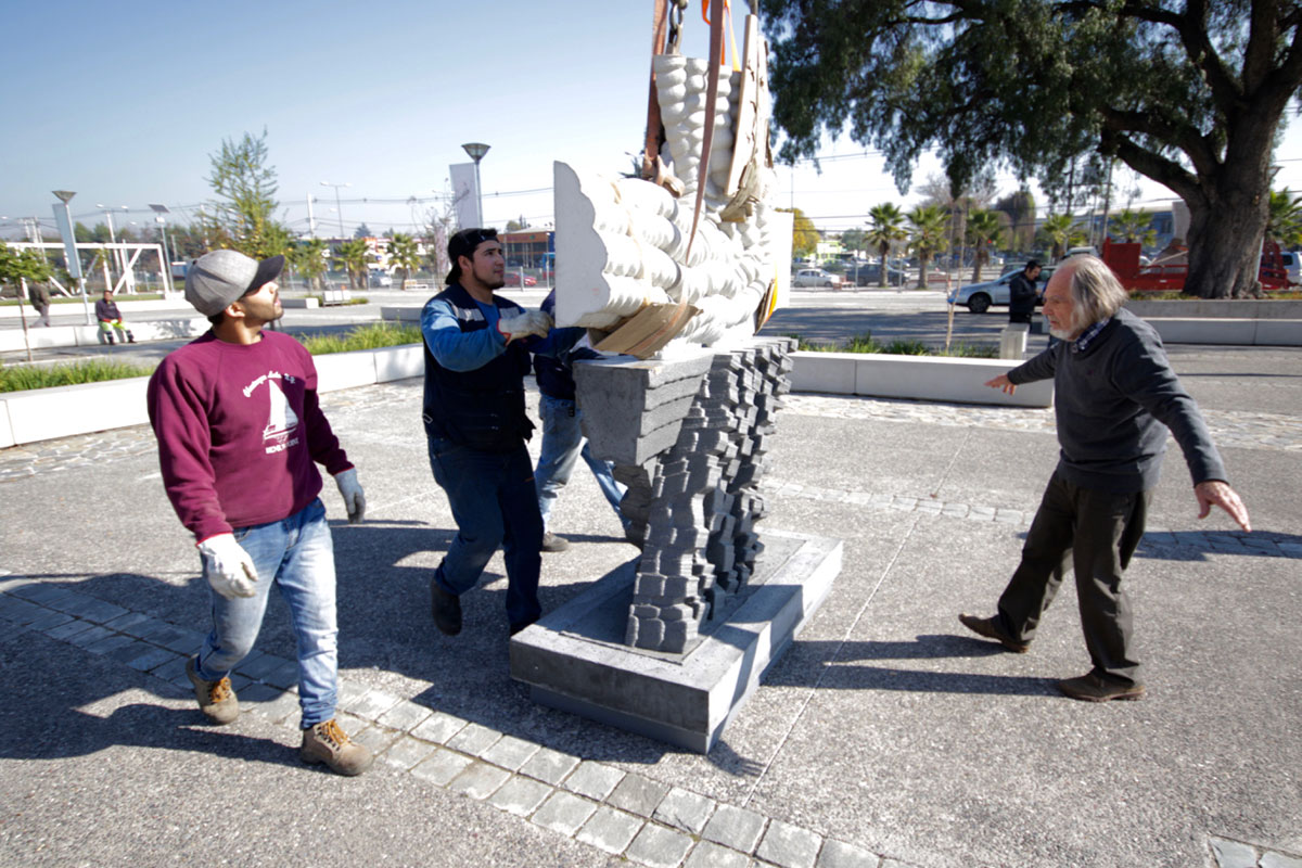 En una faena de casi 4 horas -dirigida por el propio escultor-, cuatro obras del Premio Nacional de Artes Plásticas, Federico Assler, fueron instaladas en el frontis del Centro Nacional de Arte Contemporáneo Cerrillos, dependiente del Consejo de la Cultura.