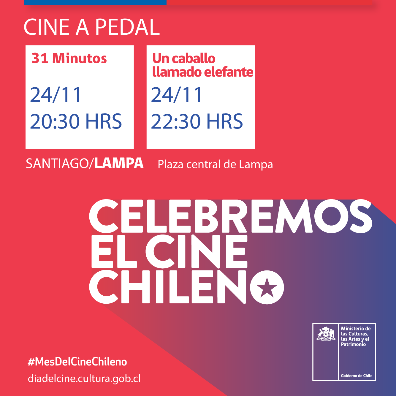 Como parte del “Mes del Cine Chileno” la Seremía de las Culturas, las Artes y el Patrimonio, de la Región Metropolitana, se está llevando a cabo una particular experiencia de cine al aire libre “Cine a Pedal”, que invita a niños y niñas, jóvenes, adultos y la familia completa, a pedalear durante la función, transformando la actividad física en electricidad.