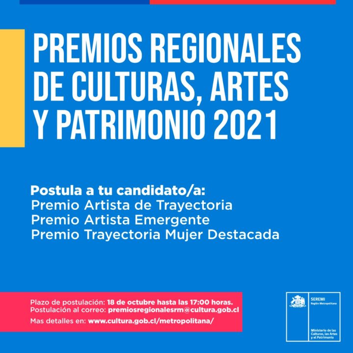 Seremi de las Culturas de la Región Metropolitana lanza convocatoria “Premios Regionales de Culturas, Artes y Patrimonio 2021”