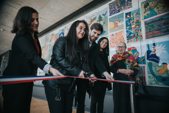 Mural textil en homenaje a Violeta Parra se reinstala en Teatro Biobío