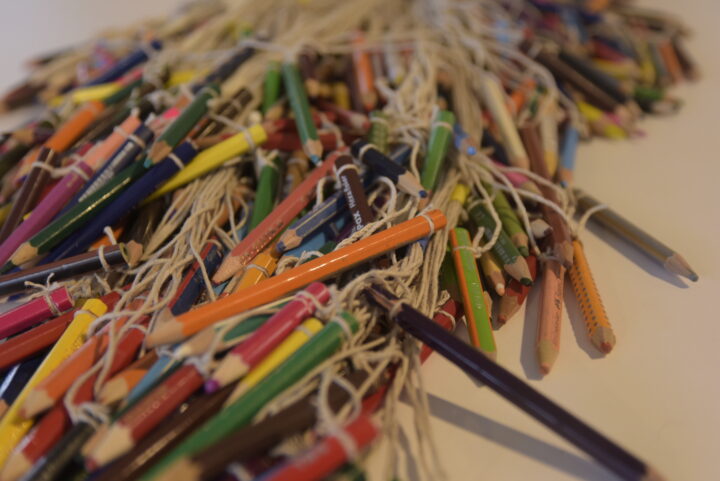 La imagen del círculo concéntrico alude a la historia de la humanidad desde tiempos remotos, por lo que despliega una pluralidad de lecturas que permiten repensar constantemente la misma obra. La pieza reúne objetos encontrados, textil, dibujo e instalación, a la vez que incorpora el acto performativo de ejecución de líneas en su proceso creativo. Lapso capital surge de la experiencia de residencia en ISCP en Nueva York en respuesta a la vida en una metrópolis. El título hace alusión a lo abundante y céntrico que caracteriza dicha ciudad.