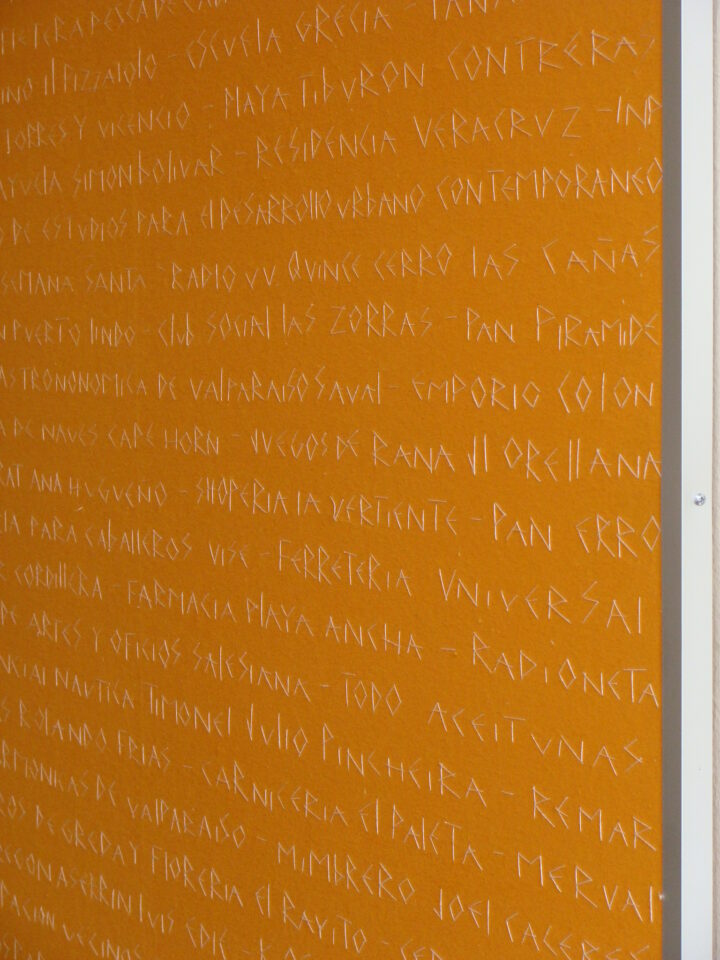 La pieza constituye una ironía analítica al tercer criterio implementado por la Unesco para declarar Valparaíso como Patrimonio de la Humanidad, donde se menciona que: “Valparaíso constituye testimonio excepcional de la primera fase de mundialización”. La palabra “excepción” es el punto de partida de la obra. Esta se compone de cinco bastidores cubiertos de moletón amarillo de fabricación nacional, usado en confección de paños de sacudir. Así también la «fase de mundialización» aludida sanciona el pasado como ruina a la vez que opera como un precedente al proceso de globalización. La obra es un testimonio de los procesos de caída en Valparaíso, y a través de una mirada crítica cuestiona la intervención de Unesco en la representación que hace de dicha ciudad.