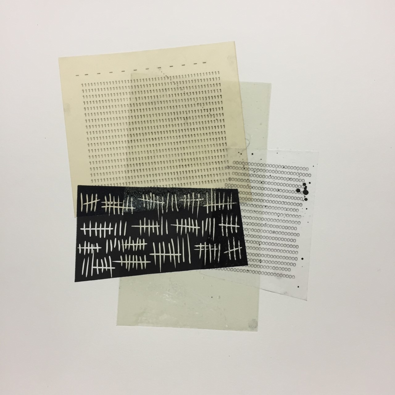 La serie “Paper machine” fue realizada bajo un sistema de matrices en linóleo, aplicación de collage y el uso de una paleta de colores particular. Está basada en las transformaciones de las imágenes técnicas, y en la pregunta por cómo han evolucionado, pasando de lo manual, códigos, retículas y pantallas sobrepuestas. Existe una transcripción del mensaje que no es imagen y que queda oculto dentro de la caja negra de los artefactos tecnológicos. “Paper machine” está pensada desde el oficio del grabado bajo una dinámica impulsiva y libre, es por eso que la edición de copias idénticas desaparece dando paso a la libertad y a la emancipación de la imagen de hoy, cuando todo es modificable y se entrevera.