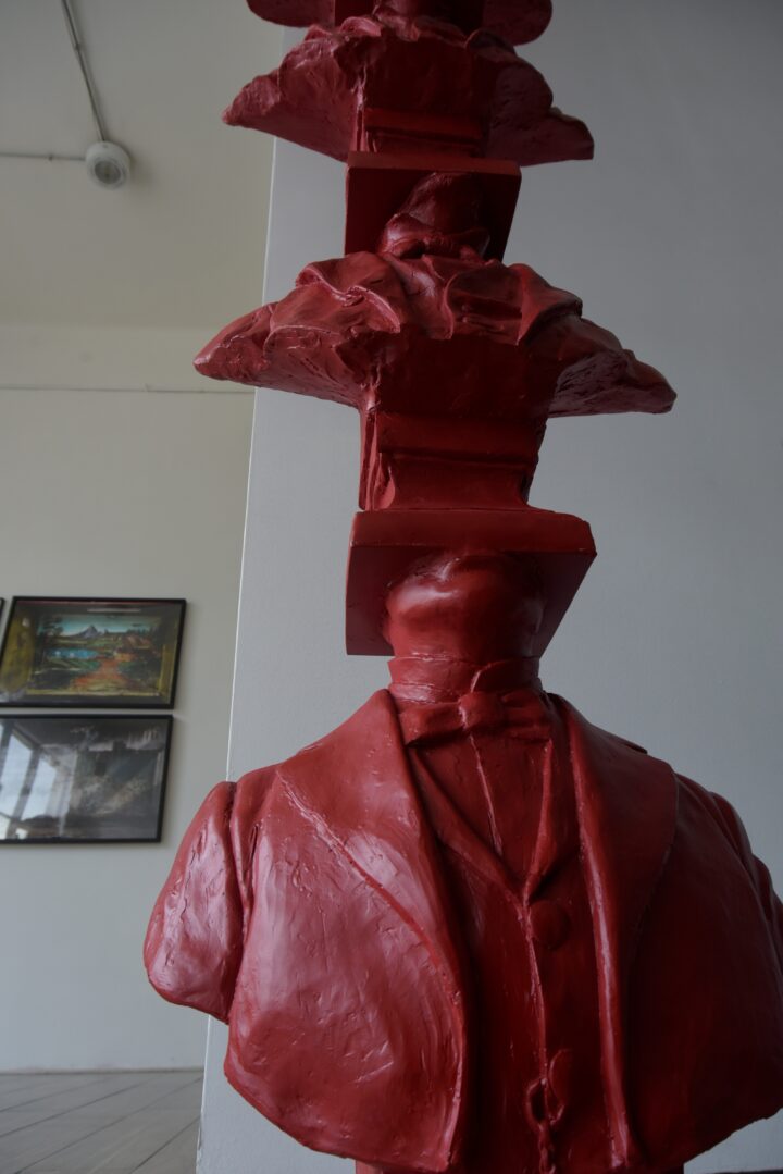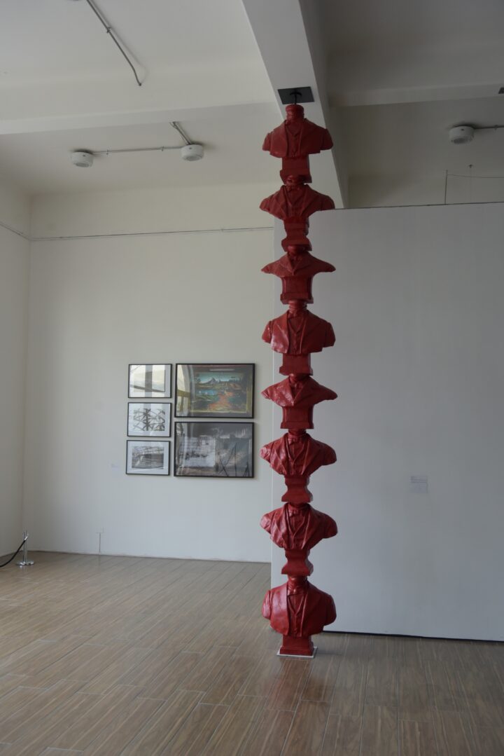 Columna sin fin problematiza en torno a la escultura vertical como símbolo de poder, representado en bustos de personajes ilustres sin rostro cuya falta de identidad personal hace alusión al estatuto patriarcal del poder: hombres blancos, occidentales ostentadores de riqueza. Tomando el trabajo de Brancusi como punto de partida, la obra permite erigir un símbolo representativo de un sistema que sostiene su orden en sí mismo.