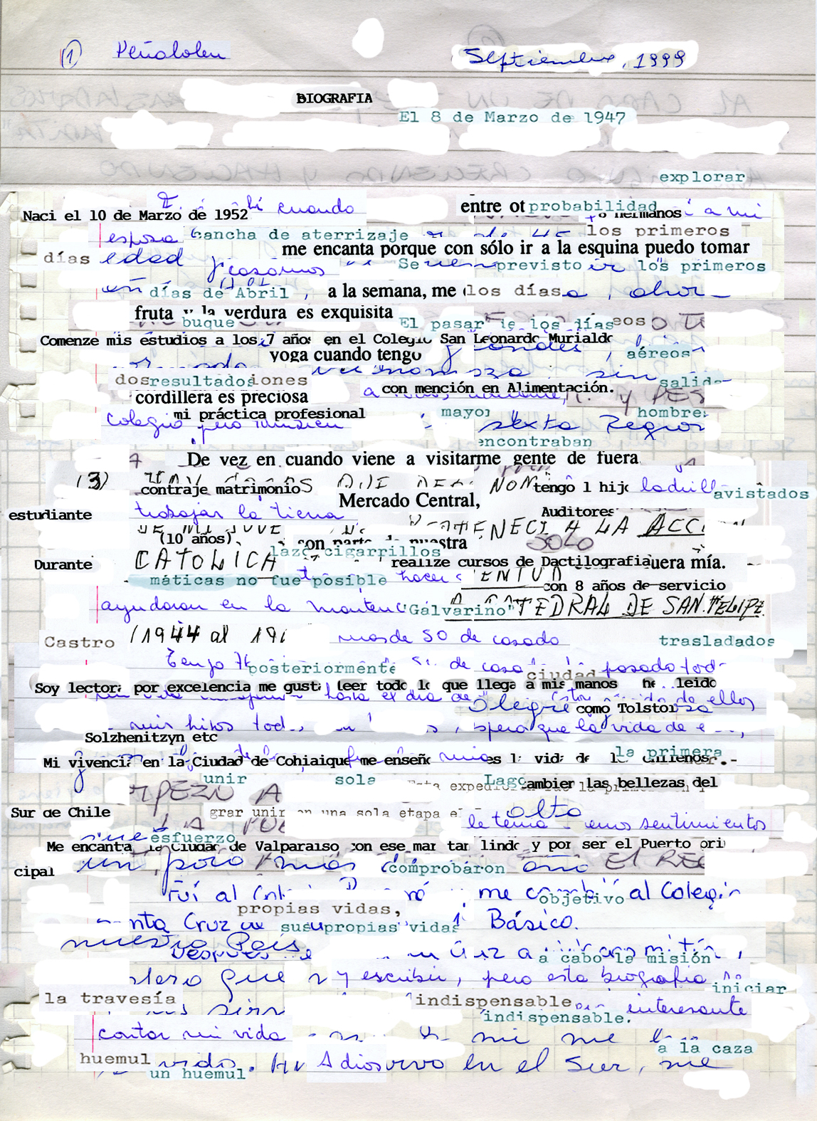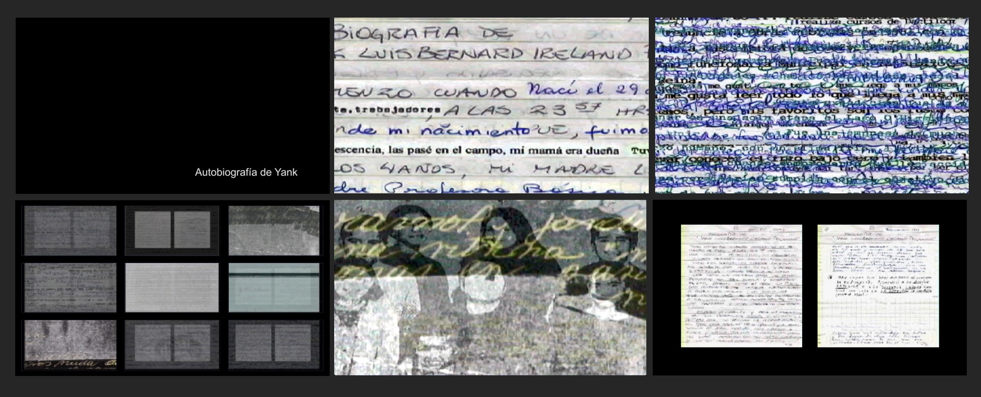 El punto de partida de esta obra es el proyecto “Archivo: documento biográfico de los habitantes de Chile” (2000) de la artista. Para aquella ocasión, solicitó cartas autobiográficas a habitantes de diferentes ciudades, localidades y pueblos de Chile, con el fin de diseñar un CD interactivo, que permitiera al público acceder a la lectura o mirada de un archivo de vidas anónimas. Para Autobiografía de Yank la artista se sirvió de aquellas cartas pero no fueron leídas como relato. Más bien se interesó por abordar los aspectos visuales de la escritura: la grafía como manifestación de su autor (la pincelada en pintura). A partir de esto, estructuró un video del mismo modo en que opera la memoria, es decir, como un palimpsesto en el que se superponen escrituras, de modo que no exista distancia entre escritura y existencia, entre escritura y memoria.