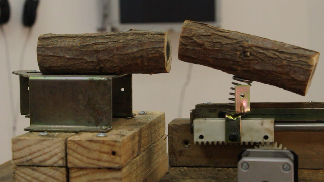 Con esta pieza reflexiona sobre el ser humano en la era antropocentrista y sus impulsos por controlar el entorno natural con la ayuda del desarrollo tecnológico y a su vez, sobre cómo la naturaleza resiste la intervención, alterando ese desarrollo y generando de pequeños a grandes desajustes o descalces.