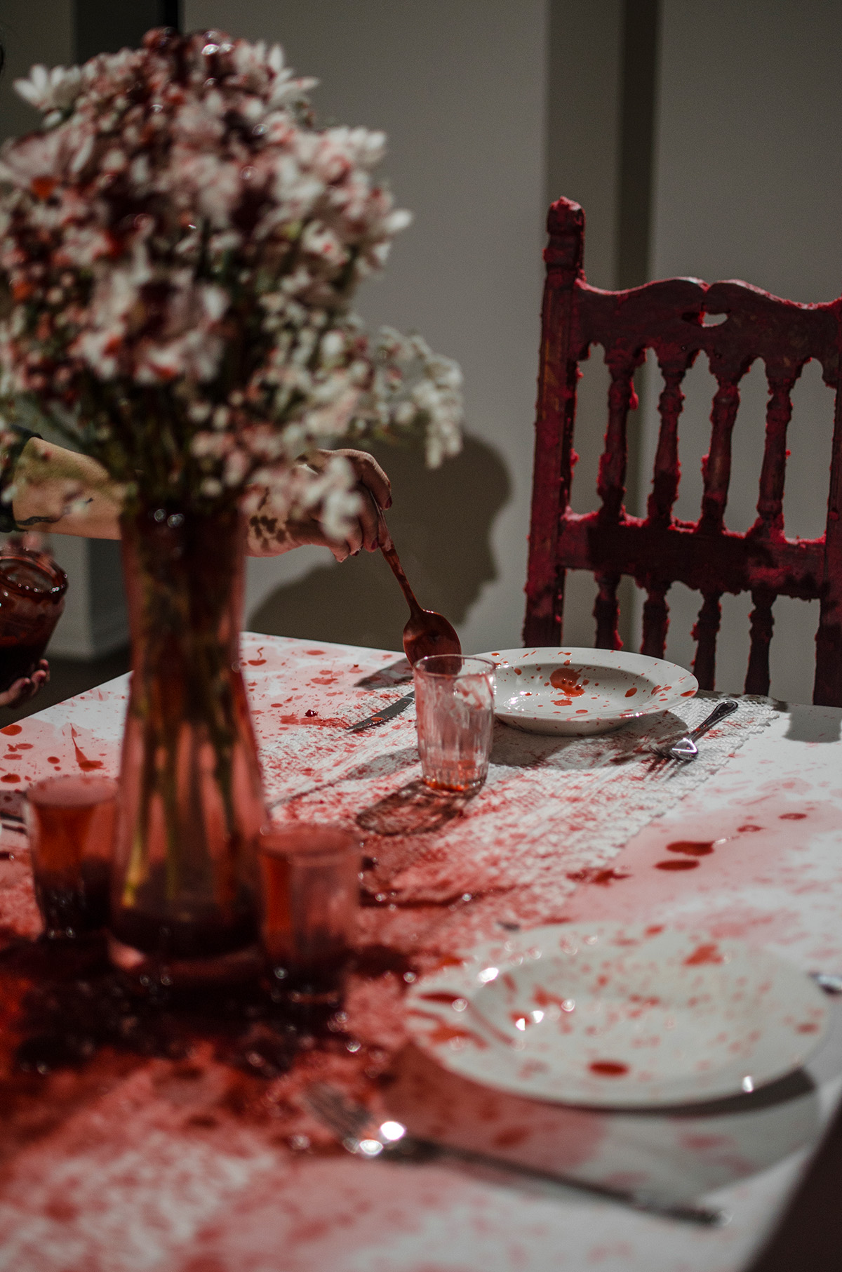 Cárcel de amor es una escena íntima cargada de lecturas, que pone en conflicto los significados de la armonía, el orden y el rol de la mujer. El olor se transforma en preguntas incómodas que se pegan en la nariz y en la cabeza, destruyendo, a través de la exacerbación, ciertos signos. El color vibrante de la cera aglutinada, desparramada en coágulos que se presentan como heridas tras una pulsión liberadora, nos empuja a salir del hogar con náuseas. ¿La escena fue producto de un momento de locura? ¿Una obsesión compulsiva? ¿Acaso una escena del crimen? ¿El hastío de la rutina, sus formas y órdenes?