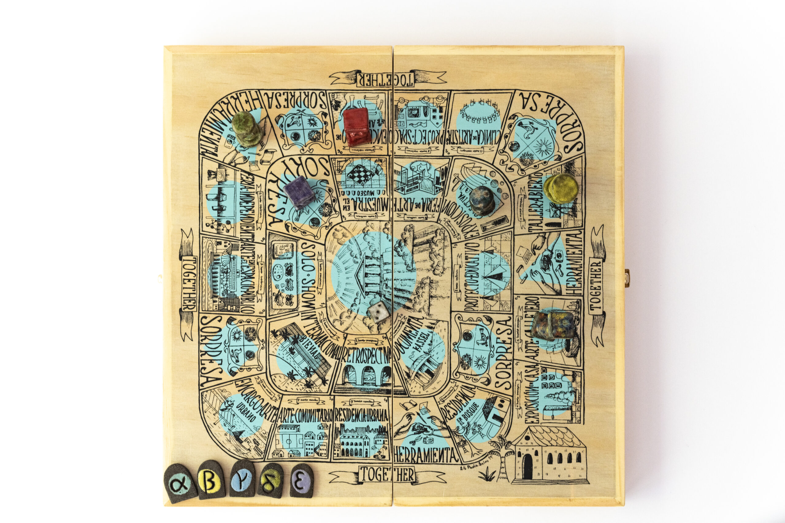 Sin embargo, en contraste con esos famosos juegos, esta obra está construida de manera colectiva. Incluye los aportes voluntarios de quienes han contribuido a los desafíos del juego con sus preguntas y estrategias. Se trata de una plataforma colaborativa que discute la encubierta realidad de nuestras vidas como artistas-padres en el “tras bambalinas” del mundo del arte. La meta es compatibilizar la creación y la crianza, buscando herramientas para trabajar de manera horizontal entre adultos y niños. Together es parte de “Leaking women: mujeres sosteniendo el techo”, un proyecto de arte contemporáneo que promueve la reflexión sobre el paradigma sociocultural de la artista-madre.