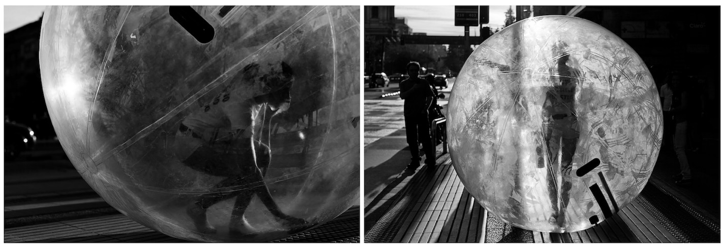 Nuestro / vuestro es una performance de intervención pública que pone de manifiesto los territorios de pertenencia del espacio y del aire que compartimos. Desde la perspectiva del peatón, propone explorar el espacio no visible pero vital en una ciudad con problemas de contaminación, con pobres sistemas de transporte público y falta de diseño urbano con áreas verdes. El acto no contaminante de caminar se ve violentado por el exceso de humo de cigarrillos y el exceso de automóviles que circulan en las calles.