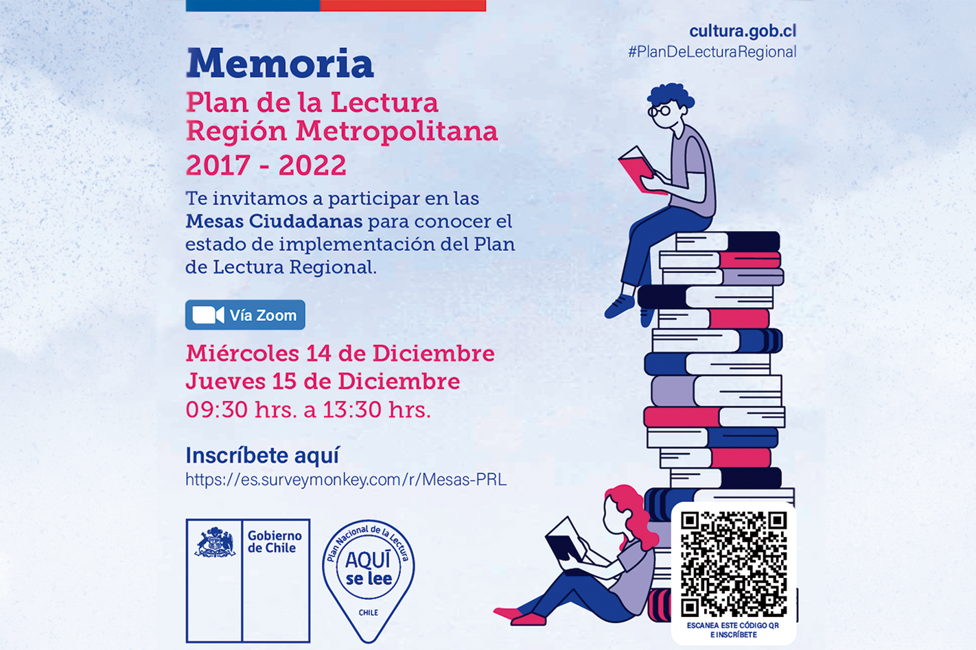 Invitamos a ser parte de la mesa de participación de la Región Metropolitana sobre los resultados de la Memoria de Gestión del Plan de lectura 2017-2022 y la sistematización de opiniones y propuestas para la próxima política pública que construiremos también con participación.