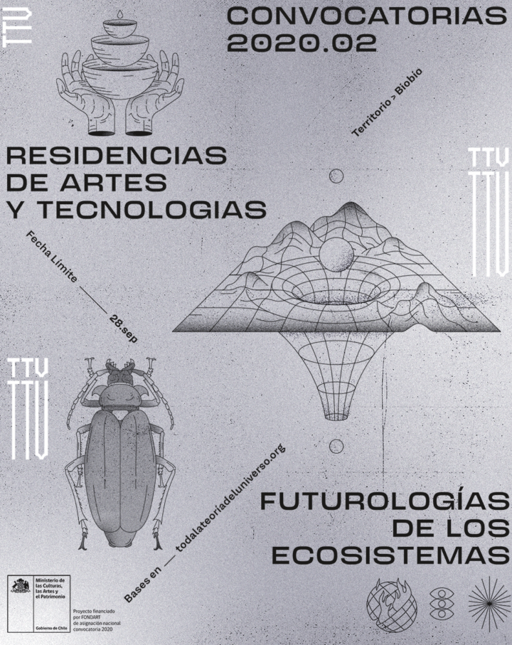 La nueva convocatoria que se mantendrá vigente hasta el 28 de septiembre, invita a reflexionar sobre las interrelaciones entre los territorios, el medio ambiente, las ciudades y sus habitantes. Para esto la plataforma Toda la Teoría del Universo (TTU), invita a participar a personas que trabajen desde las artes visuales, nuevos medios, lo audiovisual transdisciplinar, el arte sonoro, diseño, arquitectura o gastronomía, entre otras disciplinas, así como a profesionales o autodidactas de las áreas de la historia del arte, humanidades o ciencias sociales, con vinculación en proyectos de desarrollo artístico.