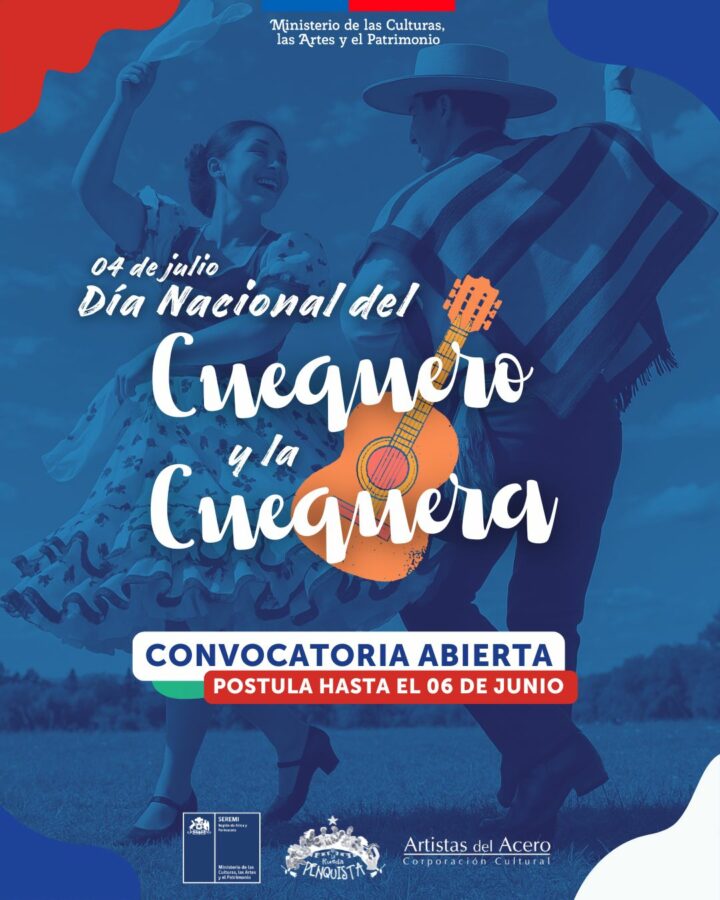 La Secretaría Regional Ministerial de las Culturas, las Artes y el Patrimonio, en conjunto con la organización cultural Rueda Penquista y con la colaboración de la Corporación Cultural Artistas del Acero, abren la convocatoria regional para agrupaciones musicales dedicadas a la interpretación de cueca. La invitación es clara: ser parte de una jornada que pondrá a bailar al corazón del Gran Concepción el próximo 4 de julio, en el marco de la conmemoración del Día Nacional del Cuequero y la Cuequera 2025.