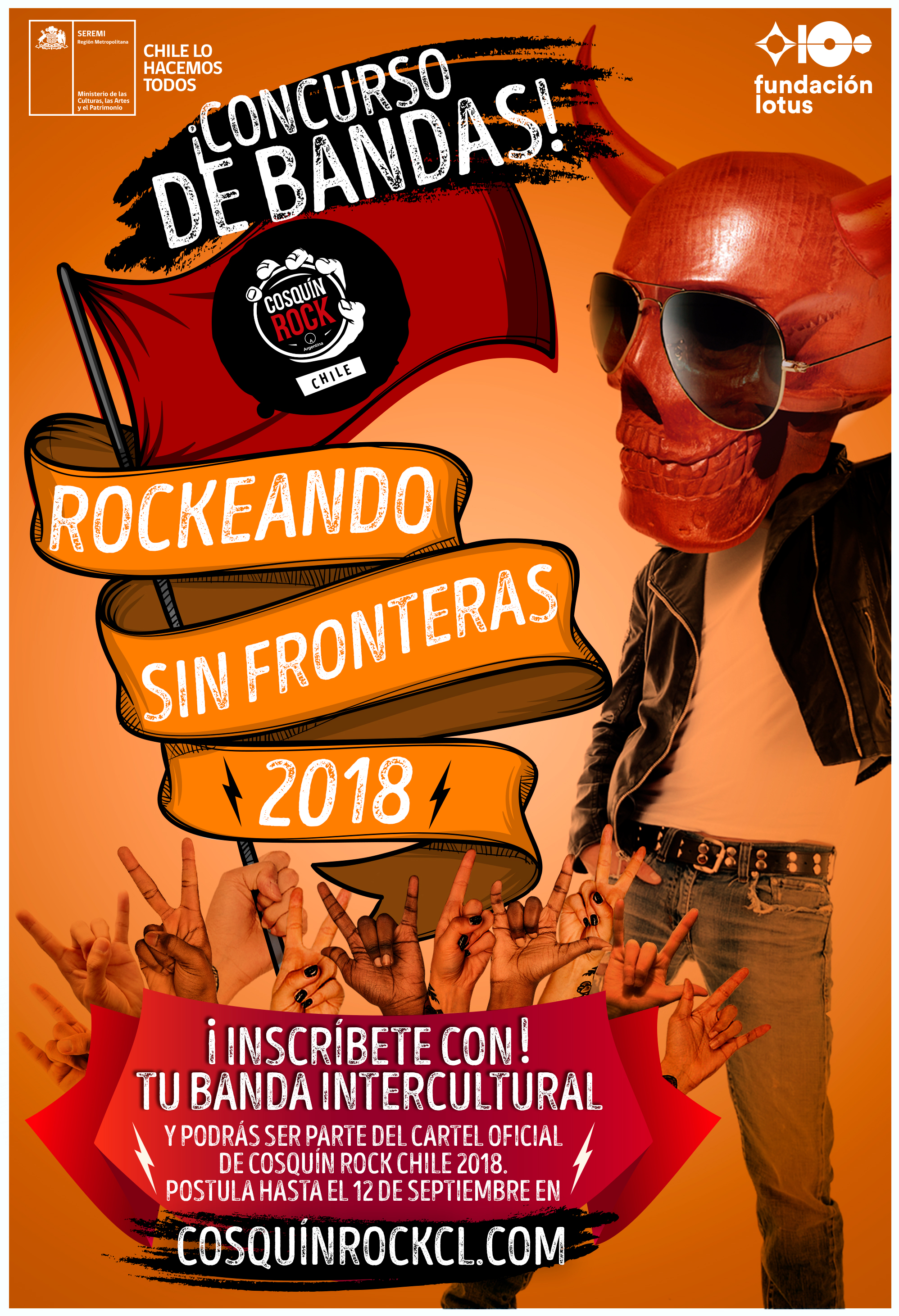 Rockeando Sin Fronteras es una iniciativa organizada por la Seremi de las Culturas, las Artes y el Patrimonio de la Región Metropolitana y la Fundación Lotus, que invita a bandas multiculturales de la región a formar parte del cartel de la primera edición en Chile del reconocido festival de origen argentino, Cosquín Rock, que se realizará entre el 6 y 7 de octubre de 2018.