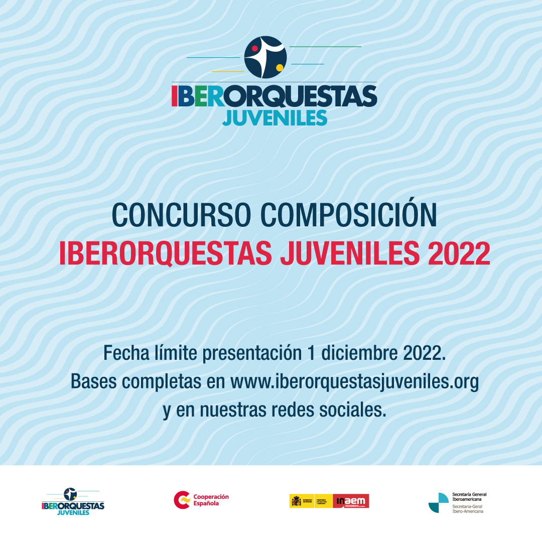 El Programa Iberorquestas Juveniles convoca al Concurso Iberoamericano de Composición para Orquesta Infantil y Juveniles, con el objetivo de fomentar la composición musical contemporánea en el espacio cultural iberoamericano y promover la defensa del acervo musical tradicional de los pueblos hispanohablantes.