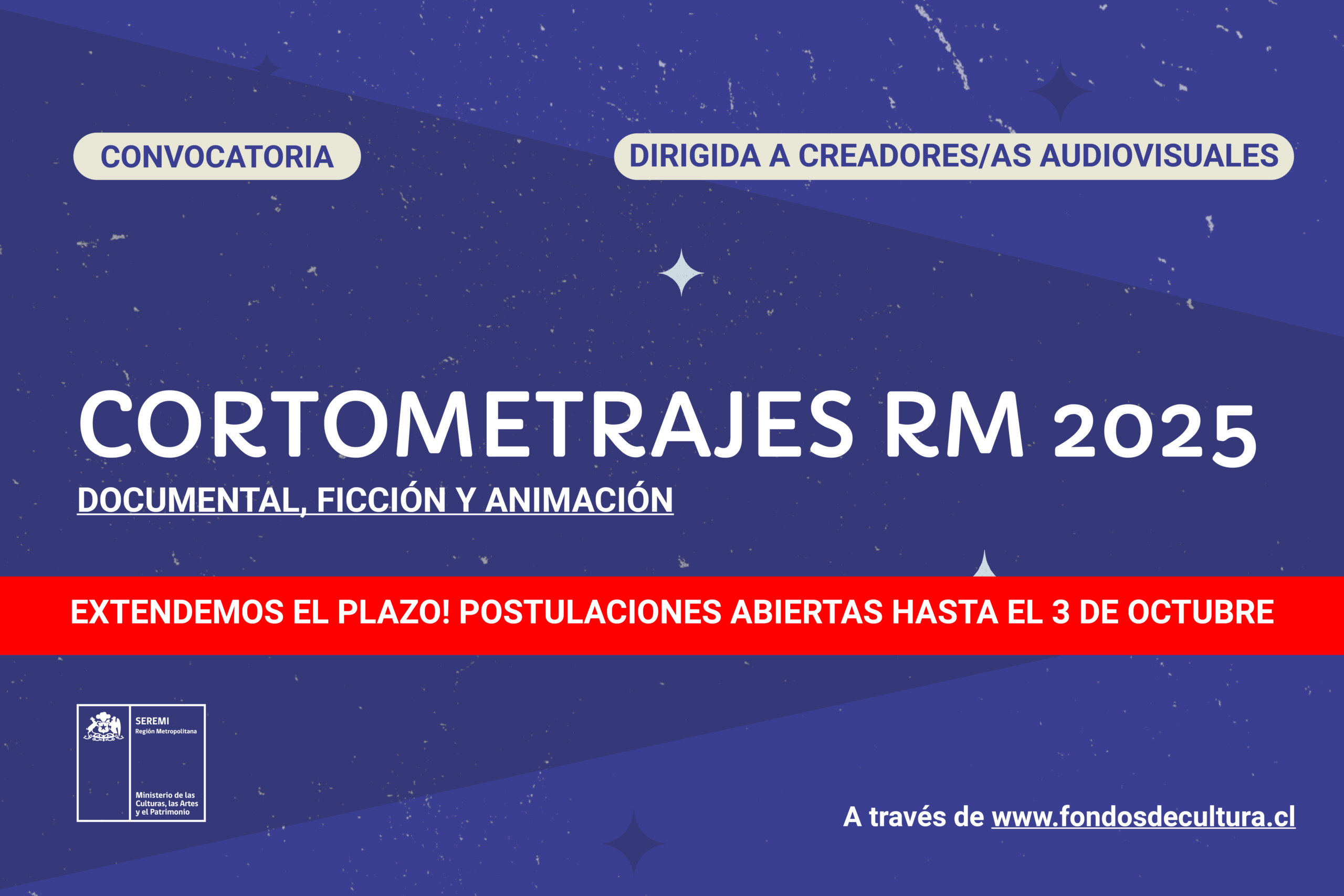 El período de postulación se extiende hasta el viernes 03 de octubre de 2025 a las 17:00 horas, a través de la plataforma www.fondosdecultura.cl.