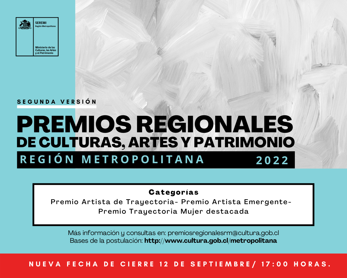 Con la segunda versión de los “Premios Regionales de Culturas, Artes y Patrimonio de la Región Metropolitana 2022”, reconocemos para que nuestra población vea y valore a quienes han desarrollado iniciativas significativas en el rescate y fortalecimiento de la identidad regional, el dinamismo en la participación ciudadana, aporte a la descentralización del desarrollo artístico y cultural con continuidad en el tiempo.